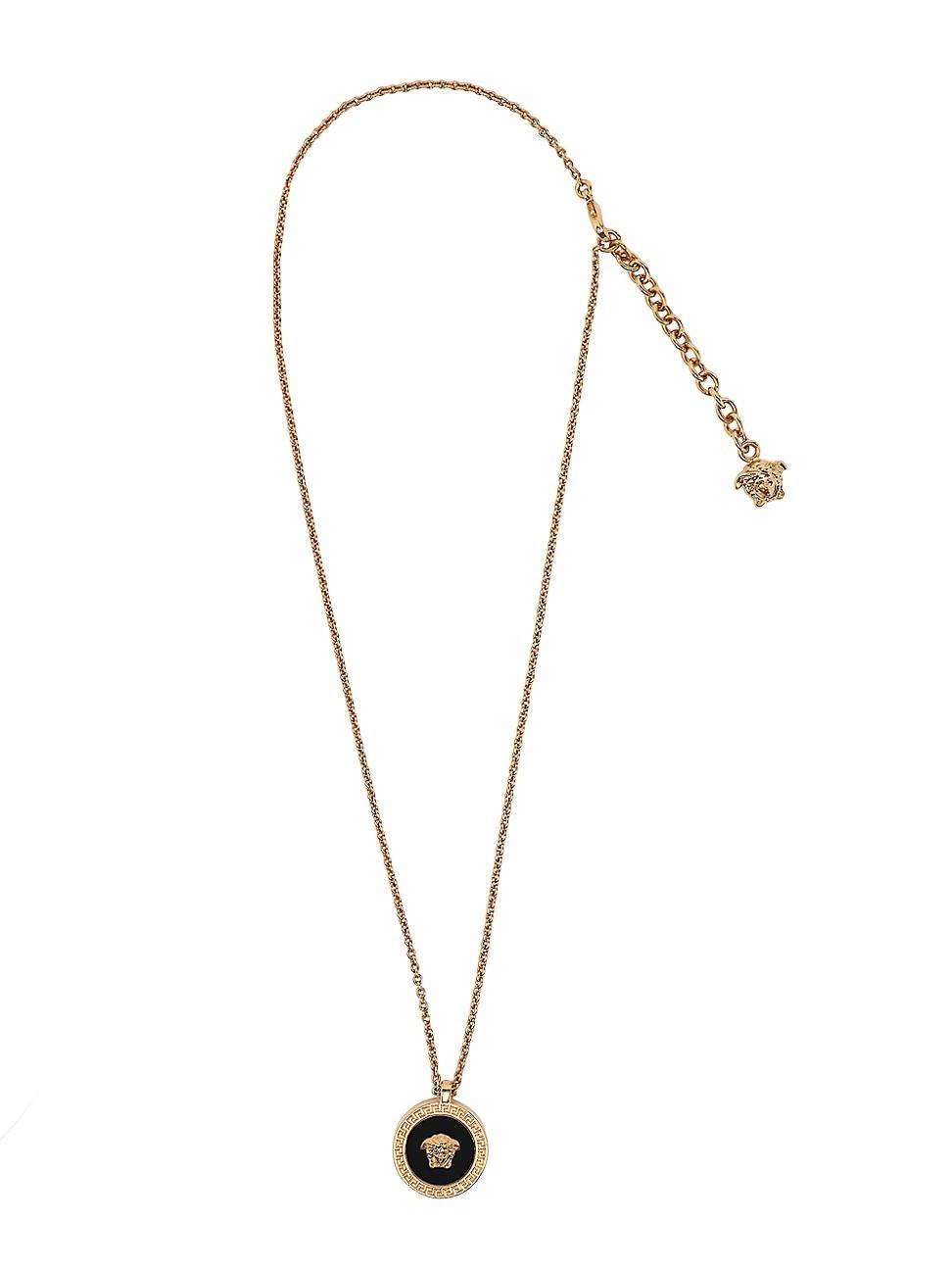 Delicate goldtone chain accented with an iconic Medusa head pendant. Metal Lobster clasp Made in Italy SIZE Pendant drop, about 0.80 Length, about 18 with 2 extender ABOUT THE BRAND Founded in 1978, Versace is instantly recognizable by the signature Medusa head logo, chosen by founder Gianni Versace for its Greek symbolism. The Italian label is known for its luxe, bold clothing, sneakers, shoes and accessories-think gilding, oversized logos and punchy prints. Since taking over artistic direction, Giannis sister Donatella Versace has maintained the brands strong identity, with a renewed vision to give customers the ultimate freedom to express themselves. Men Accessories - Jewelry > Versace > Saks Fifth Avenue > Barneys. Versace. Color: Gold Black.