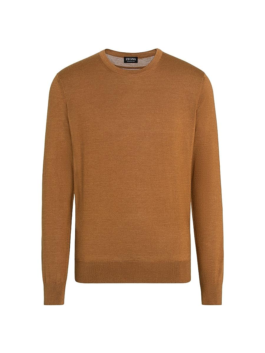 Zegnas refined blend of cashmere and silk lends the Cashseta crewneck its distinctive finish. The natural knit feels soft against the skin, elevating a simple design into a luxurious essential. The classic ribbed collar and trims complete the look. 18 gauge Ribbed crewneck collar Long sleeves Ribbed hem and cuffs Regular fit Made in Italy FABRIC DETAILS 70% Cashmere; 30% Mulberry silk This sophisticated fabric combines the softness of cashmere with the smooth finish of fine silk. The yarns of c
