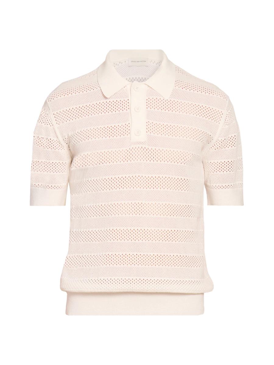 Dries Van Notens Mercy knit polo shirt is designed with crochet stripes and a vintage-inspired slim fit. Spread collar Short sleeves Three-button placket 70% viscose/30% polyester Hand wash Imported SIZE & FIT About 27 from shoulder to hem Model measurements: 62 tall, 40 chest, 31 waist Model is wearing a US size Medium ABOUT THE BRAND Designer Dries Van Noten was part of the Antwerp Six, an influential group of fashion designers who graduated from the Royal Academy of Fine Arts in Antwerp in the 1980s. Van Noten is known for his intellectual aesthetic, using artful textiles and lush prints to craft the brands clothing, shoes and accessories. Men Advcd Dsgnr - Advanced Designer Collec > Dries Van Noten > Saks Fifth Avenue > Barneys. Dries Van Noten. Color: White. Size: Large.