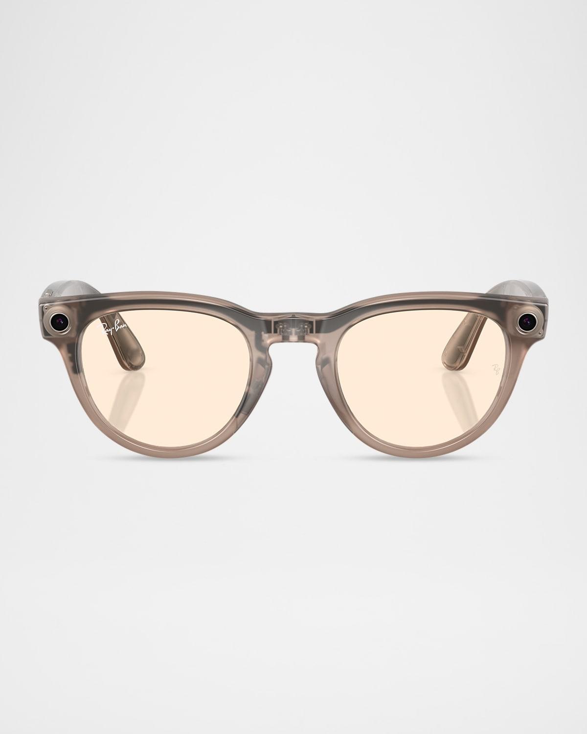 Ray-Ban "Meta Headliner" smart glasses with round plastic frames feature an iconic design with cutting-edge technology Lens/bridge/temple (in mm): 50-22-150 Polarized lenses Rx-able at Luxottica labs only Right lens logo script Keyhole nose bridge Logo hardware on the temples Tapered arms; curved temple tips Capture photos and livestream with ultra-wide 12 mp camera and five-mic system 32gb space for 500+ photos and 50+ videos Hands-free calls and messages using voice commands powered by meta ai Built-in open-ear speakers feature extended bass and high maximum volume Includes a portable charging case with up to nine charges Up to 5 hours of battery life Plastic Spot clean 100% UVA/UVB protection Made in Italy Proposition 65 warning for California residents