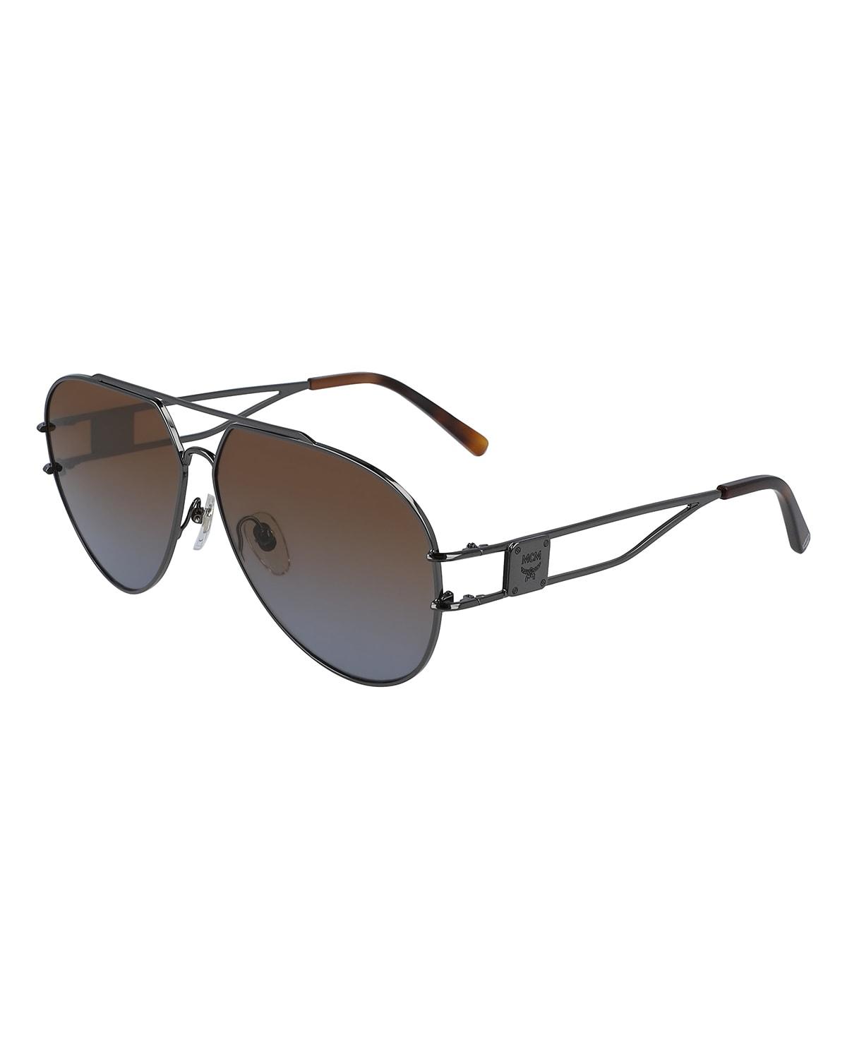 MCM aviator sunglasses in metal frames. Eye/bridge/temple (in mm): 61-11-145. Gradient lenses. Double nose bridge. Adjustable nose pads. Logo plaque at temple. Capped earpieces. 100%25 UVA/UVB protection. May be fitted with prescription lenses. Made in Italy.