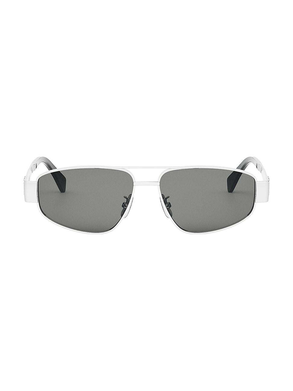 From the Metal Triomphe Collection. CELINE pilot sunglasses are crafted in Italy, featuring the Triomphe metal signature on the temples. 100% UV protection Metal Made in Italy SIZE 57mm lens width 14mm bridge width 140mm temple length. Soft Accessories - Men Sunglasses > Celine > Saks Fifth Avenue > Barneys. CELINE. Color: Palladium Smoke.