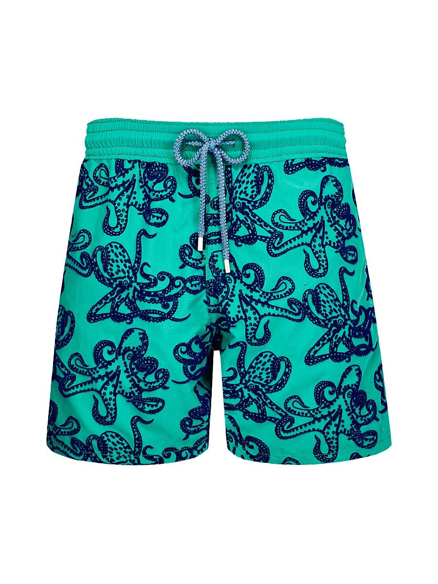 Vilebrequins Micro Poulpes swim shorts feature recycled construction with a relaxed fit and bold allover pattern. Elasticized drawstring waistband Pull-on style Back grip-tape flap pocket Cotton lining Recycled polyester Machine wash Imported of Italian fabric SIZE & FIT Inseam, about 5 Model measurements: 62 tall Model measurements: Waist 31 Model is wearing US size Medium. Mens Modern Coll & Outer - Swim Lifestyle > Vilebrequin > Saks Fifth Avenue > Barneys. Vilebrequin. Color: Coquelicot. Size: Large.