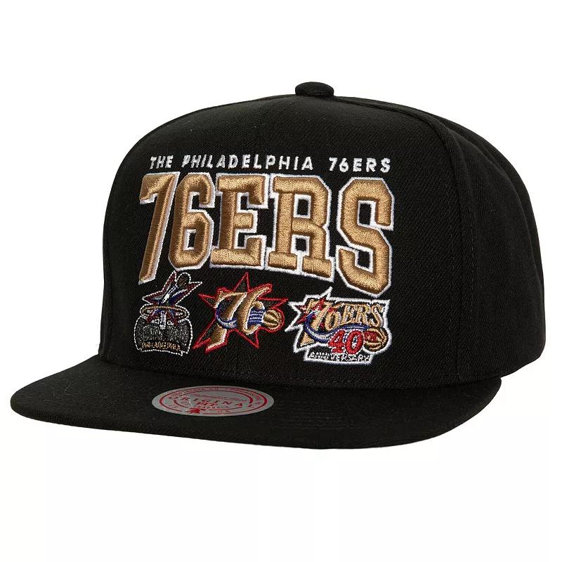 When one Philadelphia 76ers graphic just wont cut it, go for multiple in the form of this Champ Stack snapback hat from Mitchell & Ness. It features several embroidered Philadelphia 76ers graphics on the front panels for an unquestionable display of enthusiasm. The flat bill also offers a classic street-ready look, while the snap closure easily adjusts to your perfect fit.