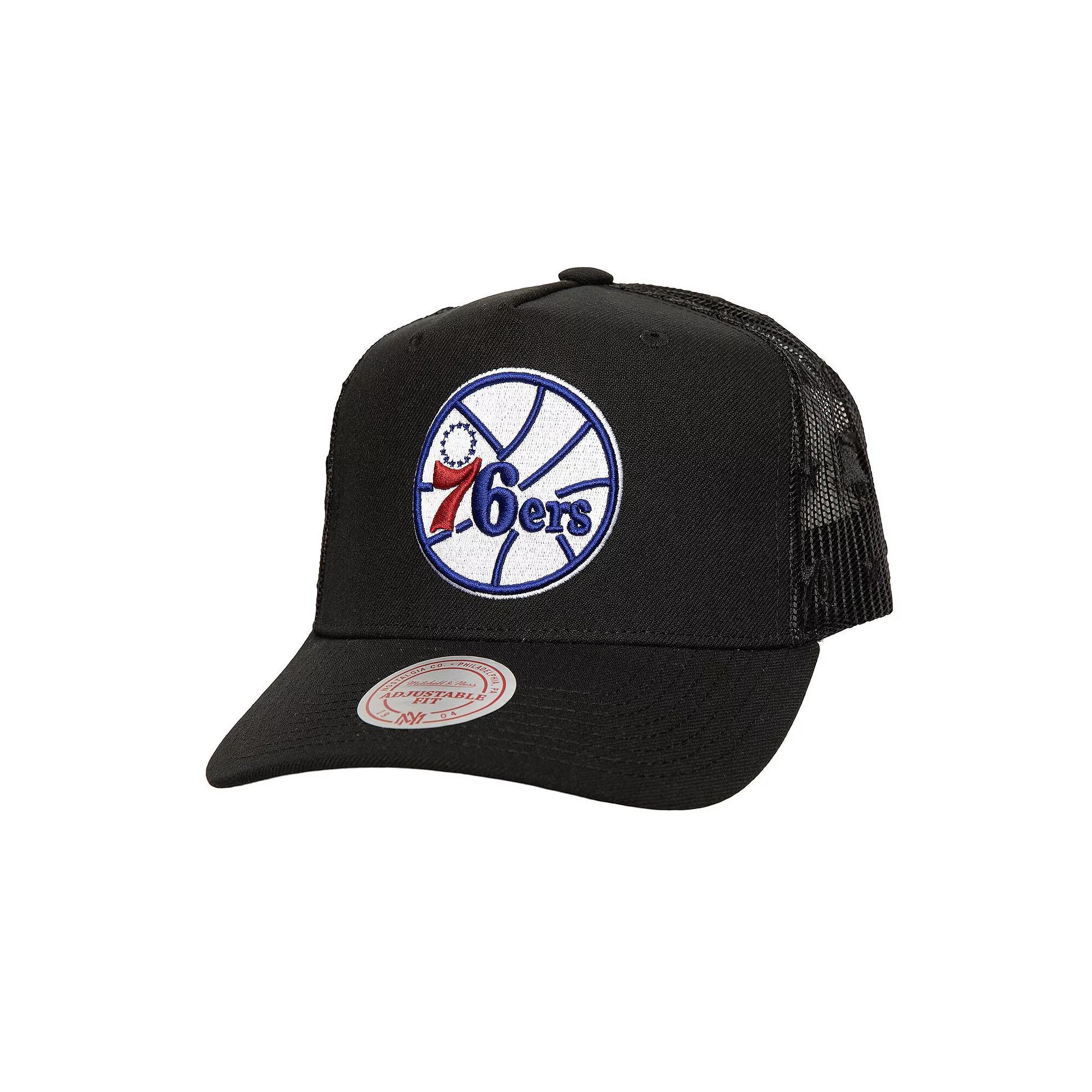 Top off any fan look with this Philadelphia 76ers Monogram All-Over Logo Mesh Trucker hat. Crafted by Mitchell & Ness, it features a color team logo across the front and monochromatic embroidered graphics all over the mesh panels. The snap closure provides a comfortable fit, perfect for repping the Philadelphia 76ers anywhere.Top off any fan look with this Philadelphia 76ers Monogram All-Over Logo Mesh Trucker hat. Crafted by Mitchell & Ness, it features a color team logo across the front and monochromatic embroidered graphics all over the mesh panels. The snap closure provides a comfortable fit, perfect for repping the Philadelphia 76ers anywhere.PRODUCT FEATURESOfficially licensedStructured fitBrand: Mitchell & NessOne size fits mostCurved billEmbroidered graphics with raised detailsMaterial: 100% PolyesterGray undervisorSnap ClosureMid CrownWipe clean with a damp clothMesh mid and rear panelsSolid front panelImported Size: One Size. Color: 76r Black. Gender: male. Age Group: adult. Material: COTTON.