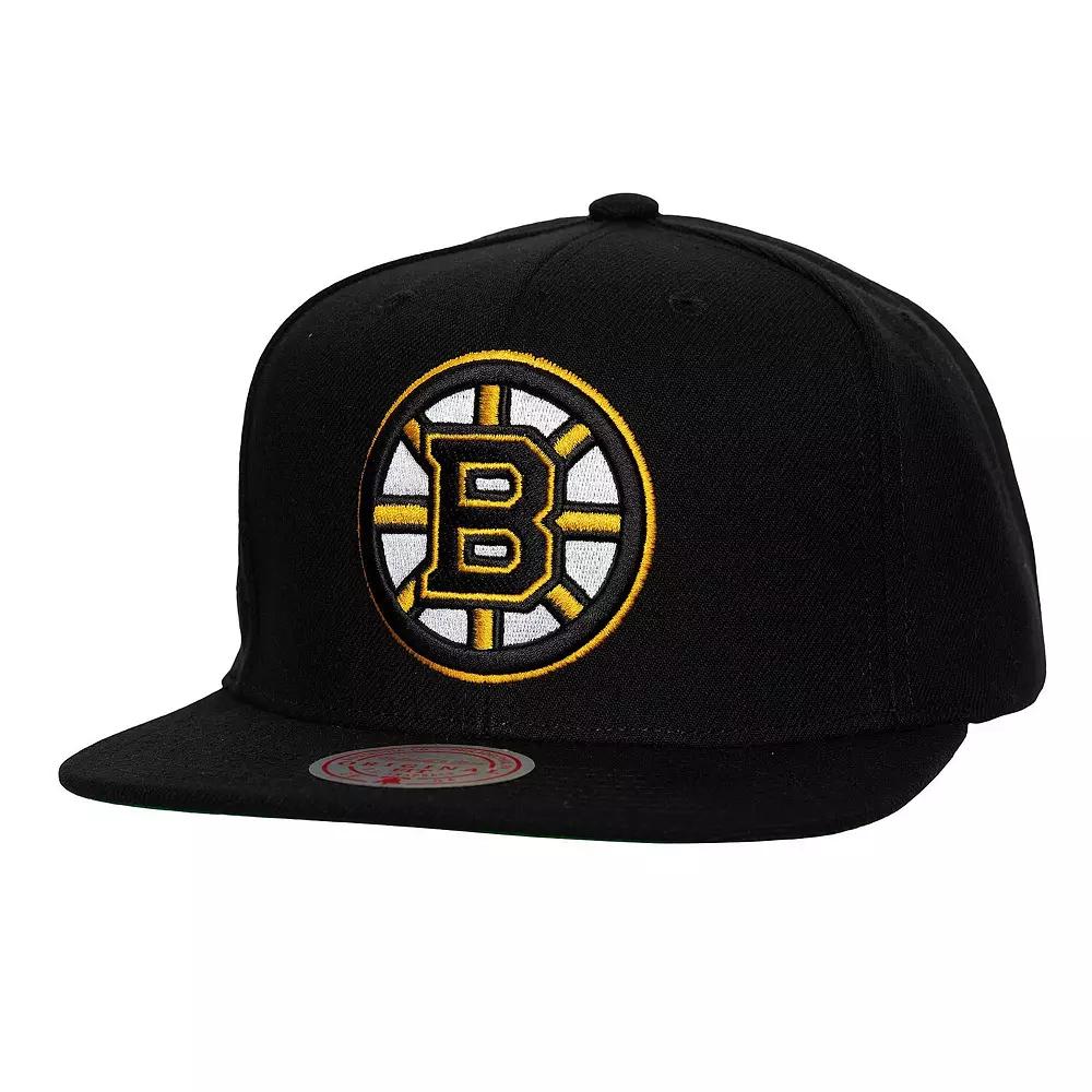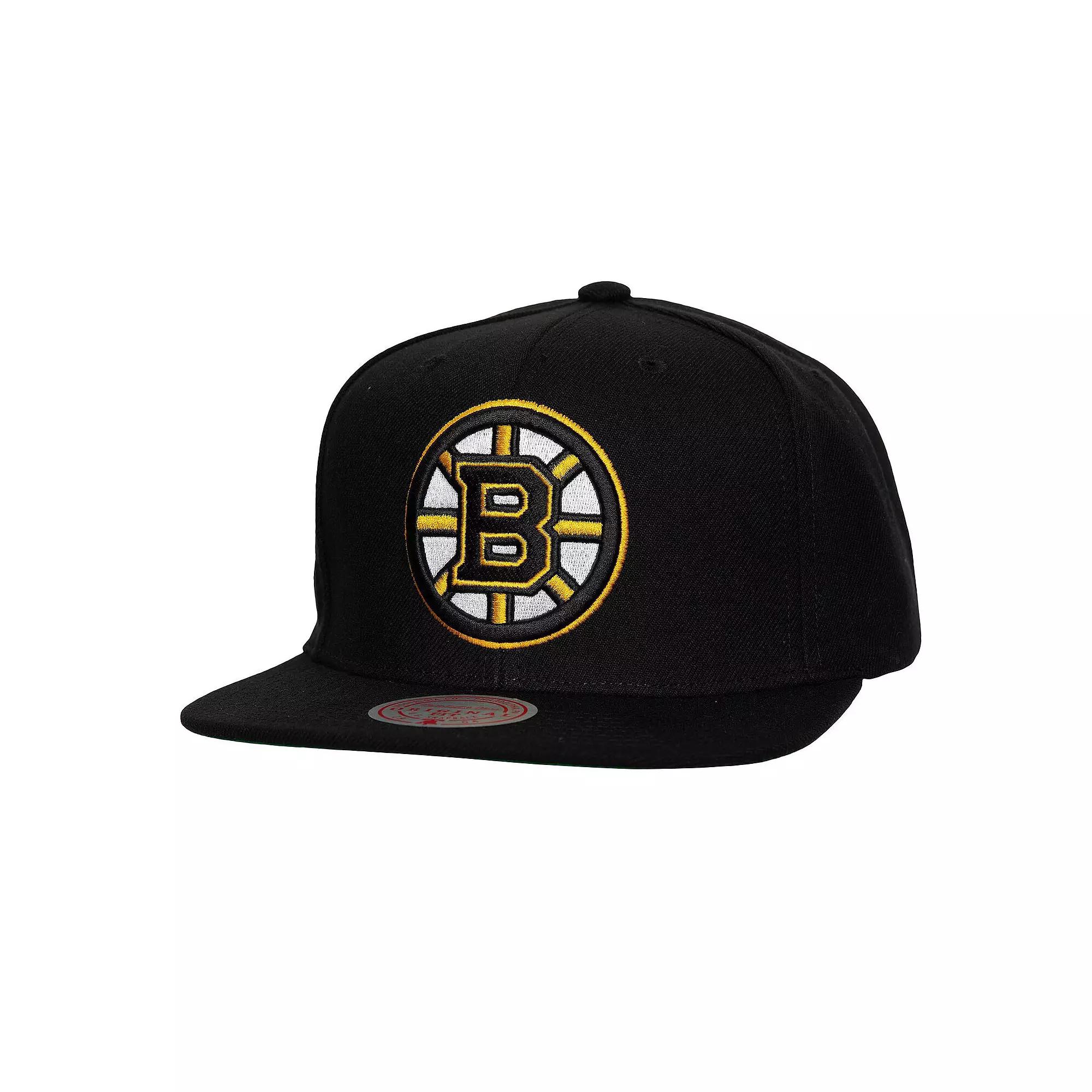 Showcase your Boston Bruins pride with this Core Top Spot Snapback Hat from Mitchell & Ness. This Boston Bruins snapback hat features a classic high crown and structured fit, offering a timeless look that never goes out of style. The team logo takes center stage in raised embroidery on the front, showcasing your Bruins pride with every wear. A commemorative patch embroidered on the side adds a touch of exclusivity, making this hat a true standout piece for any Bruins fan.Showcase your Boston Bruins pride with this Core Top Spot Snapback Hat from Mitchell & Ness. This Boston Bruins snapback hat features a classic high crown and structured fit, offering a timeless look that never goes out of style. The team logo takes center stage in raised embroidery on the front, showcasing your Bruins pride with every wear. A commemorative patch embroidered on the side adds a touch of exclusivity, making this hat a true standout piece for any Bruins fan.PRODUCT FEATURESSnapbackStructured fitOfficially licensedHigh CrownGreen undervisorSix panels with eyeletsWipe clean with a damp clothMaterial: 100% PolyesterOne size fits mostImportedFlat billTeam logo in raised embroidery on the frontCommemorative patch embroidered on the sideBrand: Mitchell & Ness Size: One Size. Color: Black. Gender: male. Age Group: adult. Material: COTTON.