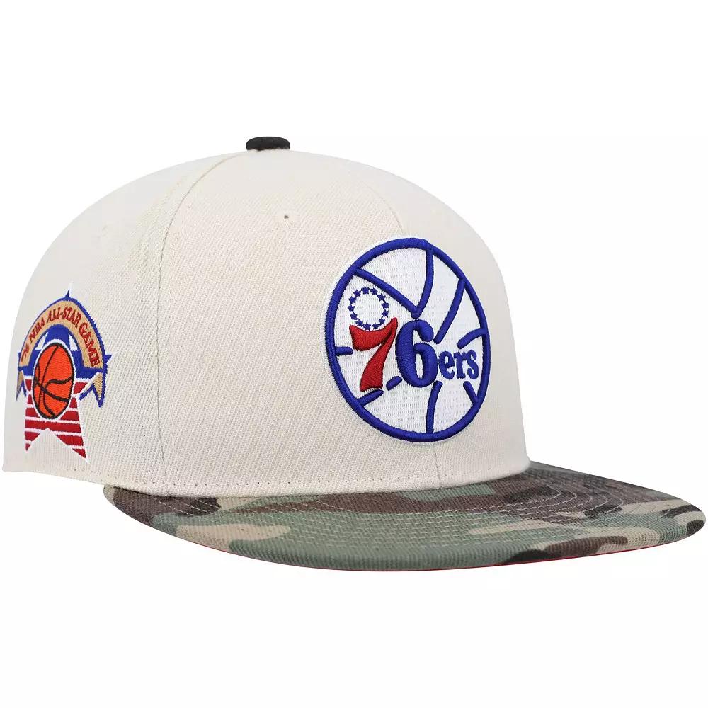 Show your unwavering support for the Philadelphia 76ers by sporting this Hardwood Classics 1976 NBA All-Star Game Off White fitted hat from Mitchell & Ness. It features embroidered graphics and a side patch honoring team history. The sublimated camo pattern and contrast-color undervisor combine to make this unique cap the perfect option to represent the Philadelphia 76ers.Show your unwavering support for the Philadelphia 76ers by sporting this Hardwood Classics 1976 NBA All-Star Game Off White fitted hat from Mitchell & Ness. It features embroidered graphics and a side patch honoring team history. The sublimated camo pattern and contrast-color undervisor combine to make this unique cap the perfect option to represent the Philadelphia 76ers.PRODUCT FEATURESOfficially licensedFittedContrast-color undervisorBrand: Mitchell & NessMaterial: 100% PolyesterStructured fitSublimated camo patternHigh CrownEmbroidered graphics with raised detailsWipe clean with a damp clothImportedFlat billSix panels with eyelets Size: 7 1/4. Color: Green. Gender: male. Age Group: adult.