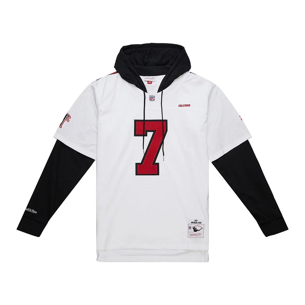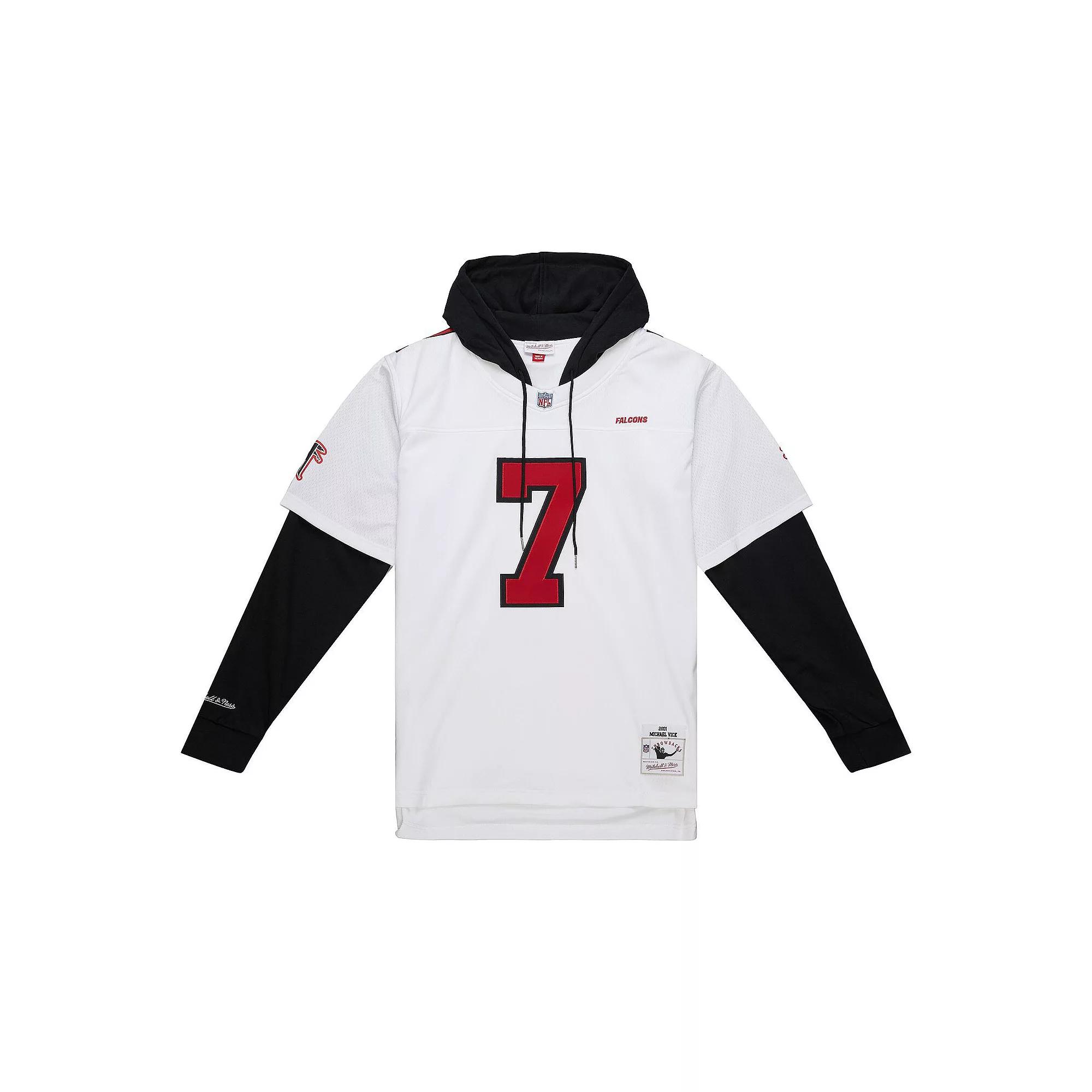 Pay tribute to a legendary Atlanta Falcons player when you sport this Michael Vick Name & Number Hoodie Legacy Jersey from Mitchell & Ness. It blends a classic jersey design with comfy elements for a versatile piece of Atlanta Falcons gear. Mesh fabric offers a breathable feel, while fleece lining adds warmth and softness to ensure you stay comfortable in this Michael Vick jersey and hoodie no matter the weather.Pay tribute to a legendary Atlanta Falcons player when you sport this Michael Vick Name & Number Hoodie Legacy Jersey from Mitchell & Ness. It blends a classic jersey design with comfy elements for a versatile piece of Atlanta Falcons gear. Mesh fabric offers a breathable feel, while fleece lining adds warmth and softness to ensure you stay comfortable in this Michael Vick jersey and hoodie no matter the weather.PRODUCT FEATURESFleece lining adds warmth and softnessSewn-on twill player name and number appliquesMaterial: 100% PolyesterHeat-sealed NFL shield patch with embroidered details at V-neckFashion JerseyTwill sleeve stripesImportedBrand: Mitchell & NessEmbroidered team logoOfficially licensedAdjustable hood provides extra protection from the coldWoven jock tag with player name and year above lower left hemDroptail hem with side splitsJersey Color Style: FashionLong sleeveMesh fabric delivers a breathable feel Size: 5XL. Color: White. Gender: male. Age Group: adult.