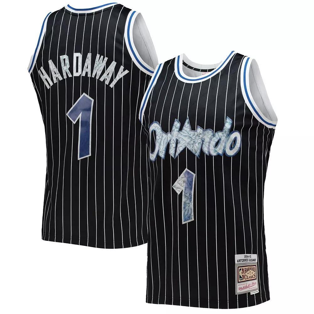 Celebrate the platinum anniversary of your favorite league NBA with the Mitchell & Ness Magic 75th Anniversary Jersey. Crafted with soft polyester fabric and a double-knit quilted diamond body pattern, this jersey ensures a relaxed feel while you swerve through the streets. Its sublimated graphics with lenticular heat seal appliques at the front and back with name and number let you rep your favorites from the league. Contrast color ribbing at the neck and arms elevates your look. Woven league jocktag lets you rep the NBA. 100% polyester. Imported.