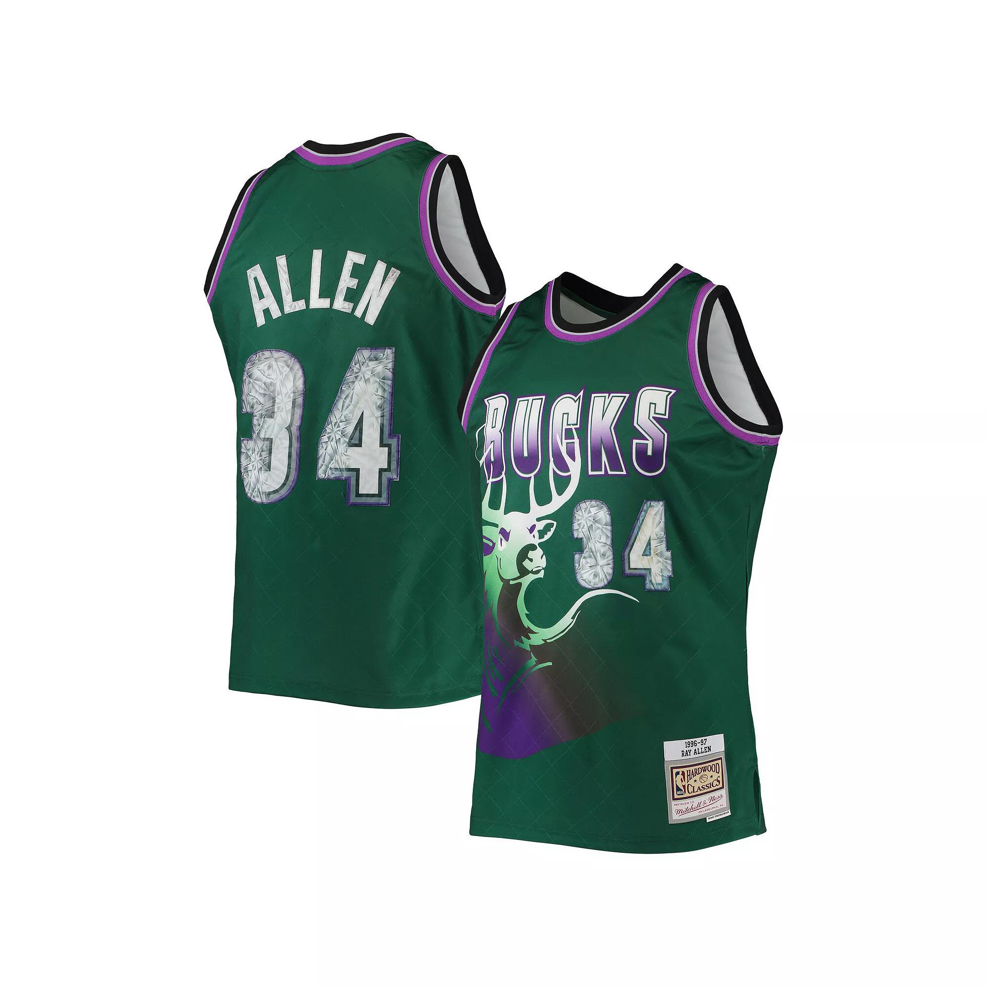 For the NBAs 75th anniversary, throw it back to one of the stars of the Milwaukee Bucks with this Ray Allen Hardwood Classics Diamond Swingman jersey from Mitchell & Ness. It features faux diamond details for the leagues big milestone and that old-school design Ray Allen used to wear back in the day. This authentic piece of gear is a great way to mesh past and present as you get fired up for game day.For the NBAs 75th anniversary, throw it back to one of the stars of the Milwaukee Bucks with this Ray Allen Hardwood Classics Diamond Swingman jersey from Mitchell & Ness. It features faux diamond details for the leagues big milestone and that old-school design Ray Allen used to wear back in the day. This authentic piece of gear is a great way to mesh past and present as you get fired up for game day.PRODUCT FEATURESBrand: Mitchell & NessImportedMachine wash, line dryMaterial: 100% PolyesterOfficially licensedSleevelessStitched designStitched holographic applique with faux diamond patternStraight hemline with side splitsWoven jock tag at hem Color: Green. Gender: male. Age Group: adult.