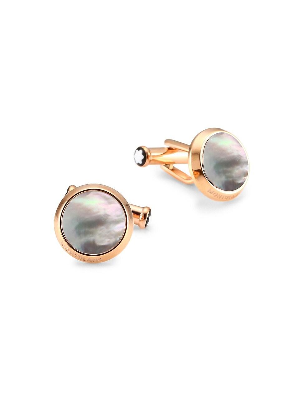 Meisterstck cuff links celebrate a timeless style. Linked to the Montblanc Meisterstck writing instrument, the timeless round shape in stainless steel with a red gold-colored PVD finish and mother-of-pearl inlay creates a jewel with a powerful Montblanc signature. Stainless steel Diameter, about 0.75 Made in Italy. Men Accessories - Luxury Collections > Montblanc > Saks Fifth Avenue > Barneys. Montblanc.