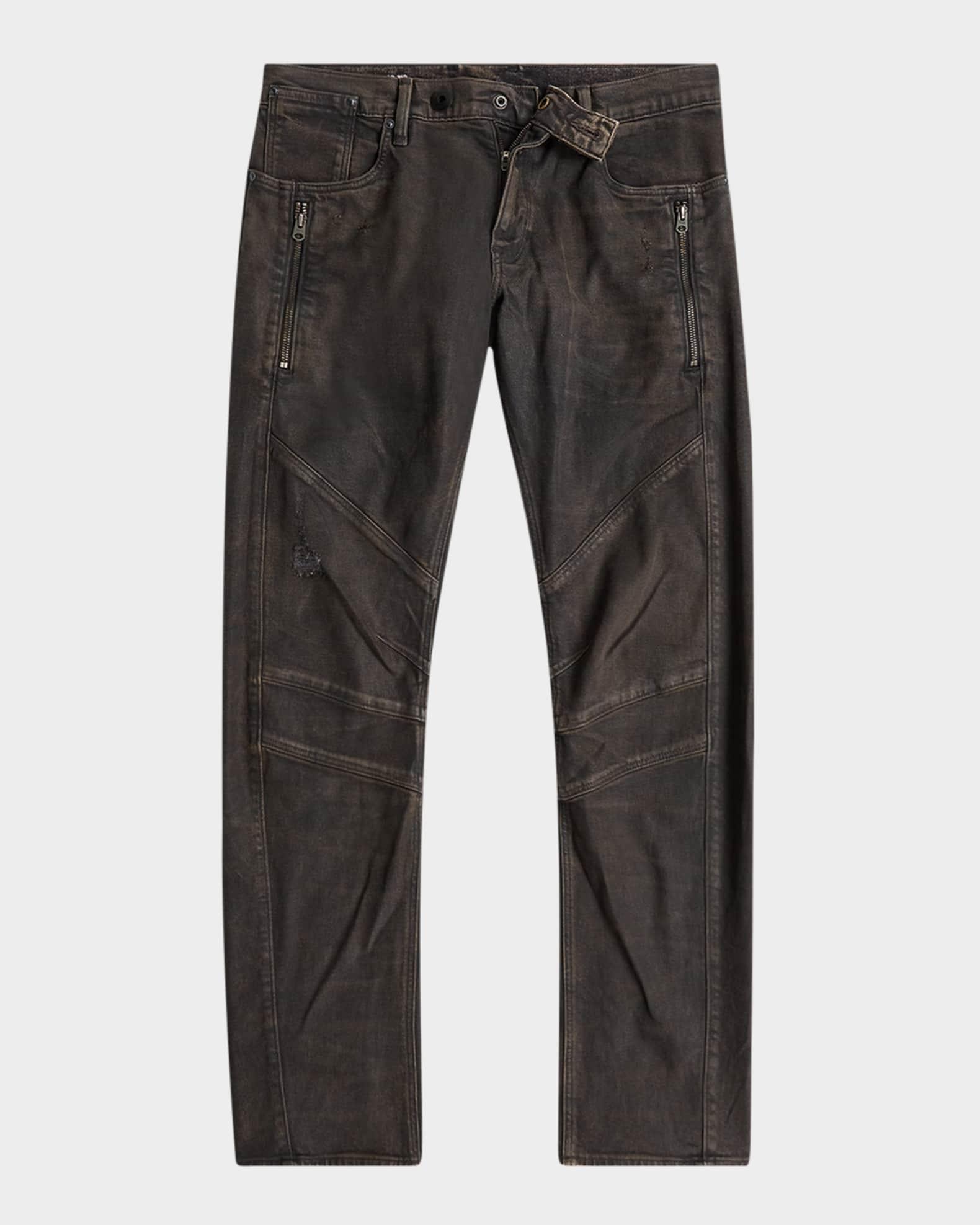 G-STAR RAW jeans in distressed denim Regular rise Extended button/zip closure Rivet reinforced front pockets Coin pocket at waistband Side zip pockets Shaped seams Slim fit Full length Cotton/elastane Machine wash cold, line dry Imported Model is 6'1"/185cm.