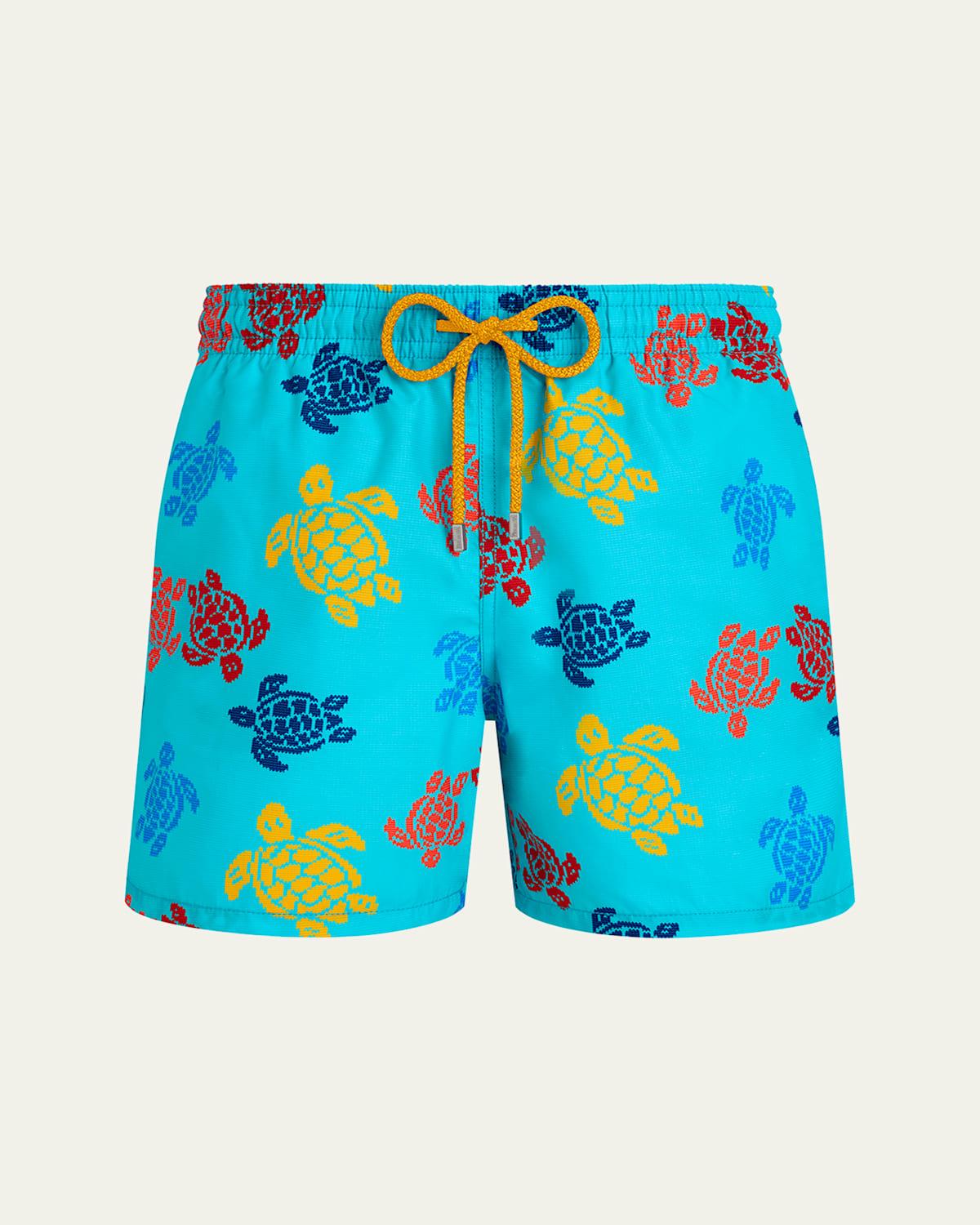 Vilebrequin swim shorts in multicolor turtle print Approx. 5.5 inseam Elastic waistband with four lines of stitching for optimal fit Side slip pockets Back flap pocket Two back eyelets for optimal water drainage Nylon/polyamide Lining: Cotton Hand wash, machine wash cold, line dry Made in Morocco