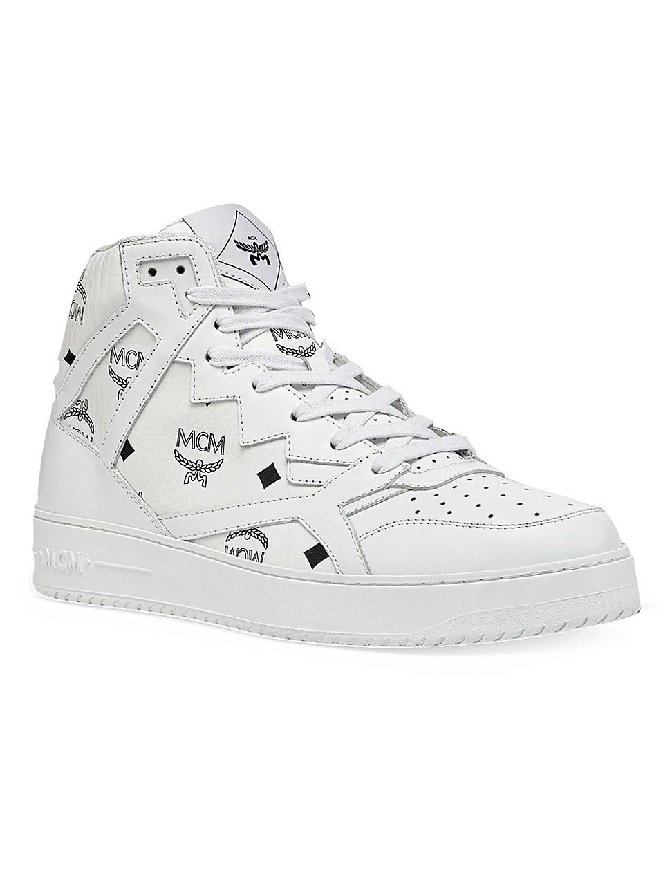 MCMs Neo Terrain Visetos high-top sneakers feature the brands signature logo-printed coated canvas upper. This lace-up pair is designed with a durable rubber sole. Round toe Lace-up style Canvas upper Polyester mesh lining Rubber sole Made in Italy ABOUT THE BRAND MCM stands for founder Michael Cromer Mnchens initials, and since 1976, the German luxury label has focused on creating travel pieces-backpacks, luggage and oversized totes-as well as shoes and accessories all in its signature Visetos logo-printed coated canvas. Mens Shoes - Advanced Footwear > Mcm > Saks Fifth Avenue > Barneys. MCM. Color: White. Size: 13.