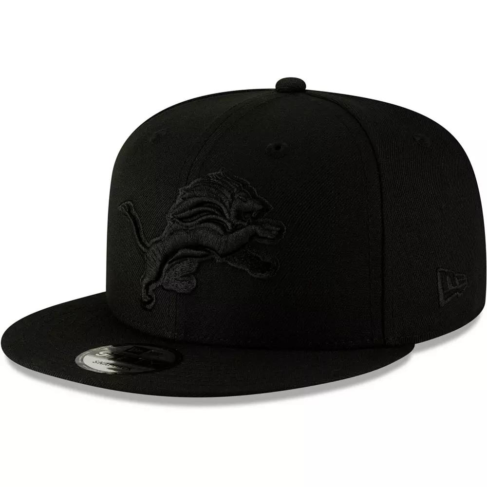 Back your team with this Detroit Lions Black on Black 9FIFTY adjustable hat from New Era.Back your team with this Detroit Lions Black on Black 9FIFTY adjustable hat from New Era.PRODUCT FEATURESStructured fitSurface washableSnapbackHigh CrownFlat billRaised embroideryBrand: New EraOfficially licensedImportedSix-panel construction with eyeletsOne size fits mostMaterial: 100% Polyester Size: One Size. Gender: male. Age Group: adult.