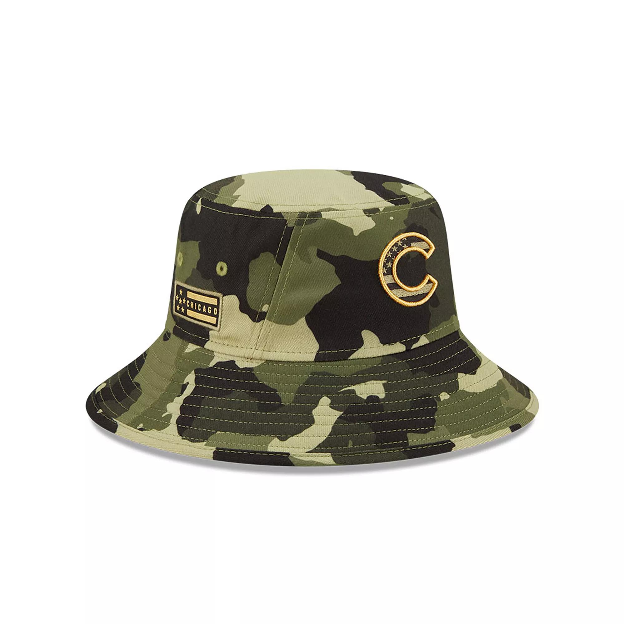 Men's New Era Camo Chicago Cubs 2022 Armed Forces Day Bucket Hat, Green