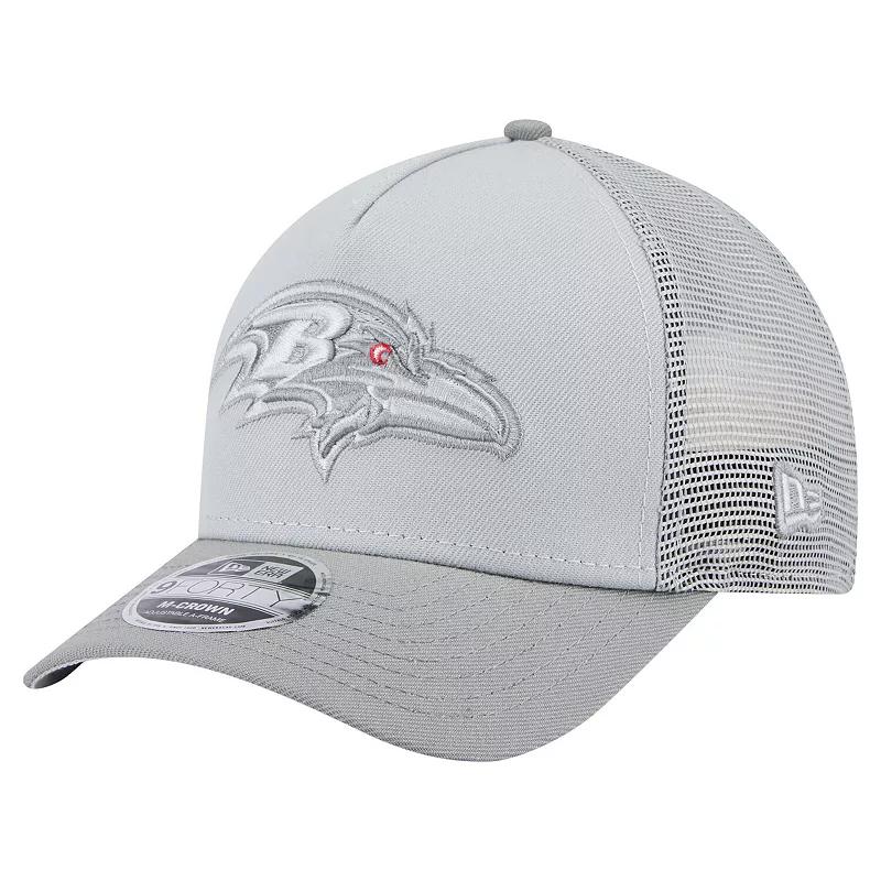 Rep your Baltimore Ravens with this New Era Domain A-Frame Trucker 9FORTY Adjustable Hat. The unique A-frame design of this hat merges the front two crown panels into one, creating a high-profile pinched shape that stands out from the crowd. With its solid front panel and mesh mid and rear panels, this hat provides a comfortable and breathable fit, perfect for those warmer game days.Rep your Baltimore Ravens with this New Era Domain A-Frame Trucker 9FORTY Adjustable Hat. The unique A-frame design of this hat merges the front two crown panels into one, creating a high-profile pinched shape that stands out from the crowd. With its solid front panel and mesh mid and rear panels, this hat provides a comfortable and breathable fit, perfect for those warmer game days.PRODUCT FEATURESCurved billBrand: New EraSolid front panelMid CrownMaterial: 100% PolyesterWipe clean with a damp clothMesh mid and rear panelsOfficially licensedSnap ClosureEmbroidered graphics with raised detailsThe 9FORTY A-Frame merges the front two crown panels into one, creating a high-profile pinched shape and an unmistakable lookImportedOne size fits mostStructured fit Size: One Size. Color: Grey. Gender: male. Age Group: adult.