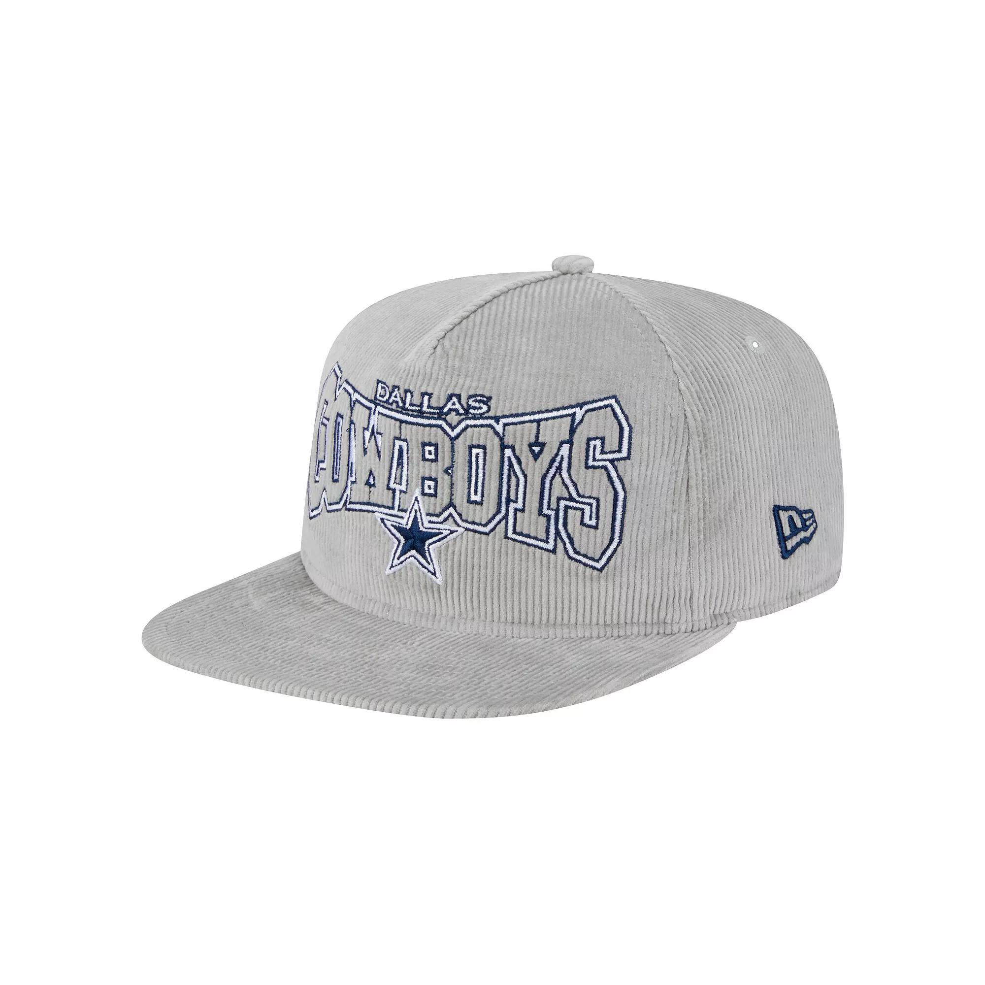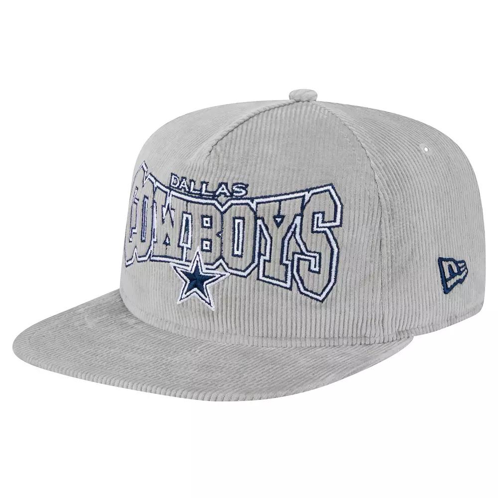 Keep the sun off your face while showing off your Dallas Cowboys pride with this Corduroy Golfer Adjustable Hat from New Era. Made from soft corduroy for a vintage look and feel, this Cowboys hat features an embroidered team wordmark and logo on the front. Its five-panel construction and unstructured, relaxed fit offer a comfortable feel thats perfect for all-day wear.Keep the sun off your face while showing off your Dallas Cowboys pride with this Corduroy Golfer Adjustable Hat from New Era. Made from soft corduroy for a vintage look and feel, this Cowboys hat features an embroidered team wordmark and logo on the front. Its five-panel construction and unstructured, relaxed fit offer a comfortable feel thats perfect for all-day wear.PRODUCT FEATURESMid CrownWipe clean with a damp clothFlat billSnapbackUnstructured relaxed fitCorduroy fabricImportedOfficially licensedFive panel construction with mid and rear eyeletsMaterial: 100% PolyesterBrand: New EraEmbroidered team wordmark and logo on frontOne size fits most Size: One Size. Color: Grey. Gender: male. Age Group: adult.
