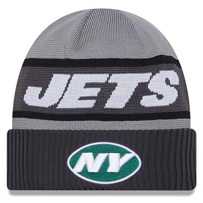 Boast your New York Jets colors while you stay warm this season with this 2023 Sideline Tech Cuffed Knit Hat. This New Era knit is built with a lightweight lining for climate versatility and embroidered team graphics on the front to show off your fandom. This knit will have you looking like your favorite New York Jets players and coaches as theyll wear this gear on the sidelines when it gets cold this year,Boast your New York Jets colors while you stay warm this season with this 2023 Sideline Tech Cuffed Knit Hat. This New Era knit is built with a lightweight lining for climate versatility and embroidered team graphics on the front to show off your fandom. This knit will have you looking like your favorite New York Jets players and coaches as theyll wear this gear on the sidelines when it gets cold this year,PRODUCT FEATURESEmbroidered graphicsBrand: New EraOfficially licensedOne size fits mostWoven graphicsMaterial: 100% Polyester - Shell; 86% Acrylic/9% Wool/5% Spandex - LiningImportedCuffed Size: One Size. Color: Grey. Gender: male. Age Group: adult.