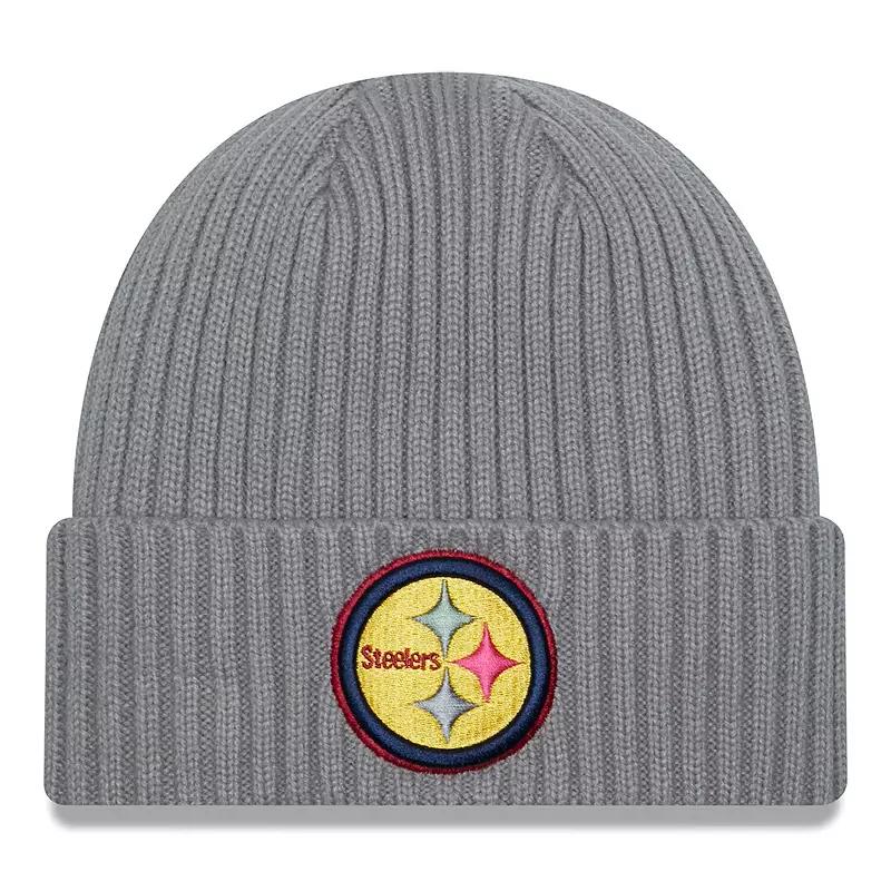 Make your Pittsburgh Steelers spirit stand out with this Color Pack Multi cuffed knit hat from New Era. It features the Pittsburgh Steelers logo in colorful embroidery that pops off the neutral fabric. The wool lining adds an extra layer of softness and warmth for more comfortable wearing.Make your Pittsburgh Steelers spirit stand out with this Color Pack Multi cuffed knit hat from New Era. It features the Pittsburgh Steelers logo in colorful embroidery that pops off the neutral fabric. The wool lining adds an extra layer of softness and warmth for more comfortable wearing.PRODUCT FEATURESHand wash, dry flatLinedBrand: New EraOfficially licensedMaterial: 100% Acrylic - Shell; 90% Polyester/10% Wool - LiningImportedCuffedOne size fits mostEmbroidered graphics with raised details Size: One Size. Color: Grey. Gender: male. Age Group: adult.
