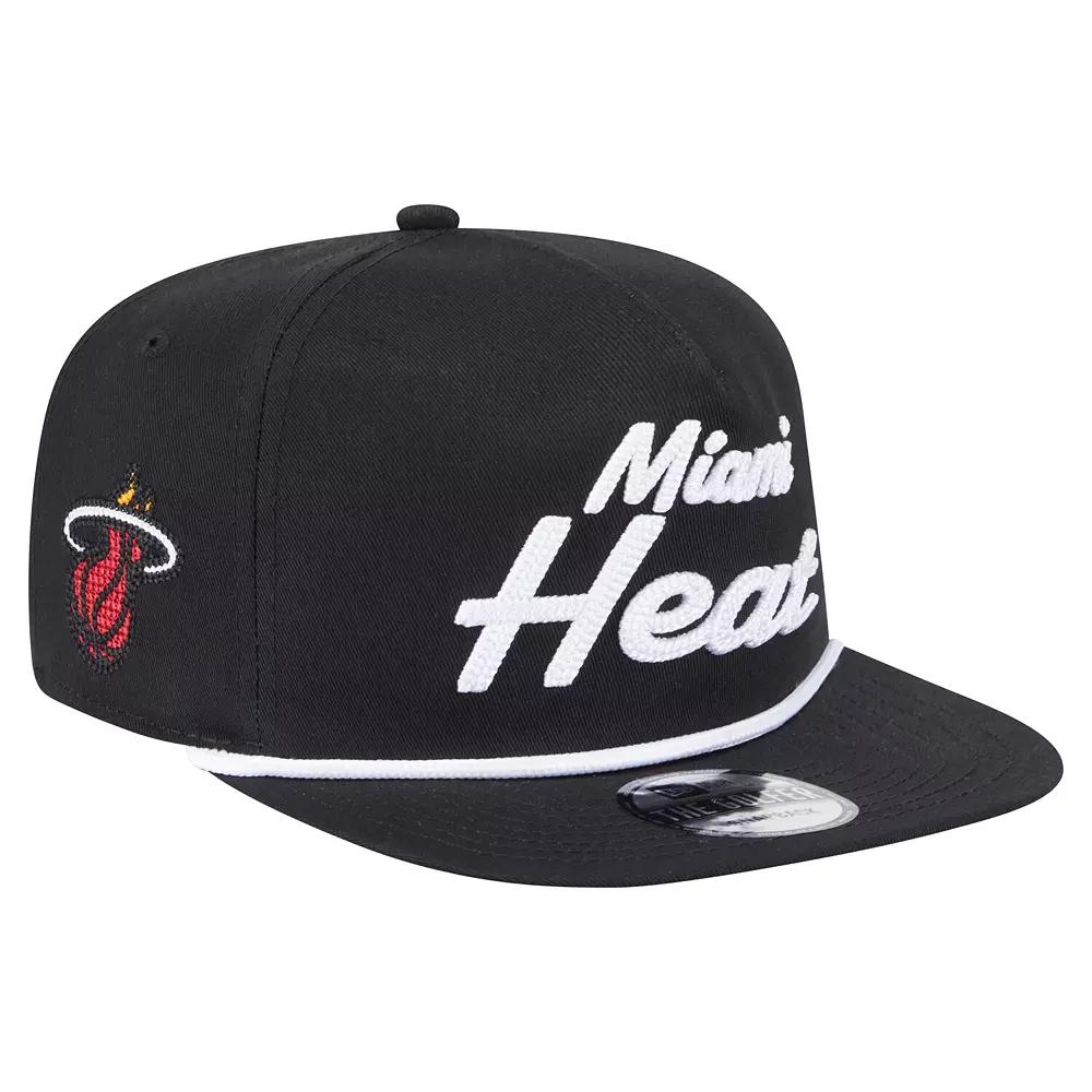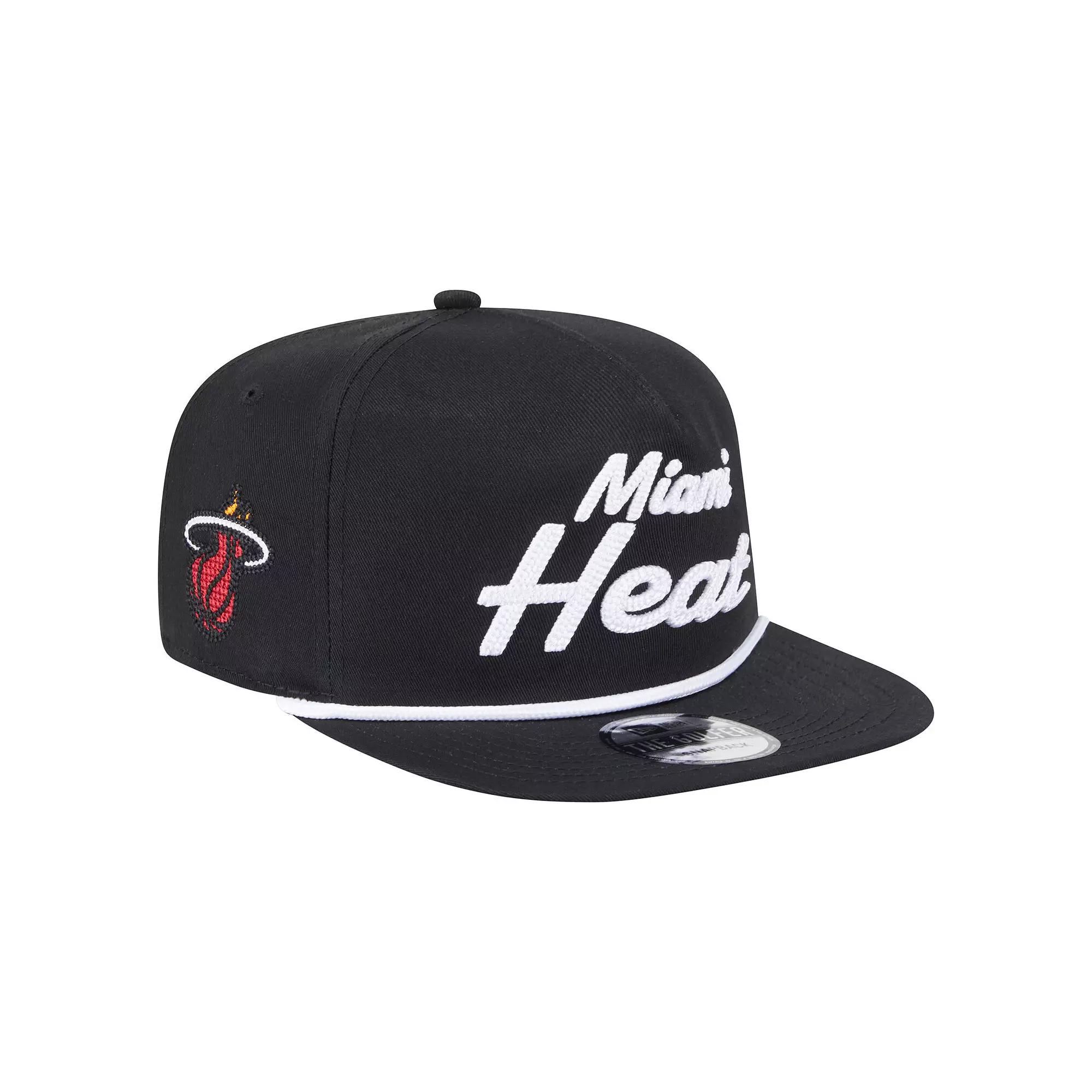 Complete your Miami Heat game day look with this Team Text Golfer Snapback Hat from New Era. This throwback style cap features a semi-structured, five-panel design with a pinched crown and flat visor for a retro look reminiscent of classic 80s and 90s snapbacks. The front panel proudly displays chain stitch embroidered Miami Heat wordmark with raised details, while the right panel showcases the team logo for an authentic touch.Complete your Miami Heat game day look with this Team Text Golfer Snapback Hat from New Era. This throwback style cap features a semi-structured, five-panel design with a pinched crown and flat visor for a retro look reminiscent of classic 80s and 90s snapbacks. The front panel proudly displays chain stitch embroidered Miami Heat wordmark with raised details, while the right panel showcases the team logo for an authentic touch.PRODUCT FEATURESUnstructured relaxed fitBrand: New EraMid CrownFlat billThe Golfer is a semi-structured cap, with a pinched crown and flat visor which gives a retro look and shape like snapbacks from the 80s and 90sMaterial: 100% CottonMid and rear panels with eyeletsWipe clean with a damp clothChain stitch embroidered team logo on right panelImportedOfficially licensedFive-panel constructionChain stitch embroidered team wordmark with raised details on front panelSnapback Size: One Size. Color: Black. Gender: male. Age Group: adult.