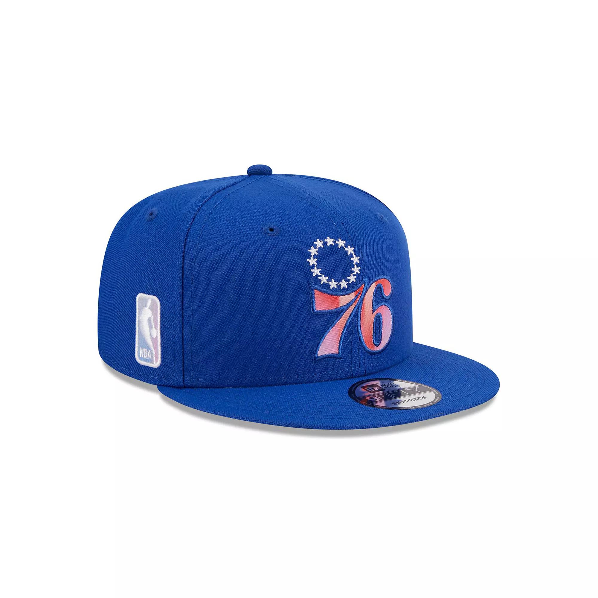 This New Era 9FIFTY hat is a fun take on your fandom. It features a bold Philadelphia 76ers logo with gradient details and a vibrant undervisor for a standout look. A snapback closure allows for a customized fit.This New Era 9FIFTY hat is a fun take on your fandom. It features a bold Philadelphia 76ers logo with gradient details and a vibrant undervisor for a standout look. A snapback closure allows for a customized fit.PRODUCT FEATURESOne size fits mostOfficially licensedStructured fitMaterial: 100% PolyesterFlat billEmbroidered graphics with raised detailsHigh CrownSnapbackWipe clean with a damp clothBrand: New EraImportedSix solid panels with eyeletsContrasting gradient undervisor Size: One Size. Color: Blue. Gender: male. Age Group: adult.