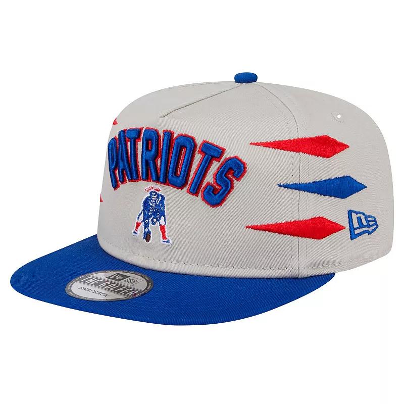 Hit the links in New England Patriots style with this New Era Athletic Golfer Snapback Hat. The Golfer cap features a semi-structured fit with a pinched crown and flat visor, evoking the classic snapback style of the 80s and 90s. Featuring eye-catching embroidered New England Patriots graphics with raised details, this hat lets you rep your team with a vintage vibe.Hit the links in New England Patriots style with this New Era Athletic Golfer Snapback Hat. The Golfer cap features a semi-structured fit with a pinched crown and flat visor, evoking the classic snapback style of the 80s and 90s. Featuring eye-catching embroidered New England Patriots graphics with raised details, this hat lets you rep your team with a vintage vibe.PRODUCT FEATURESEmbroidered graphics with raised detailsSnapbackOfficially licensedWipe clean with a damp clothImportedUnstructured relaxed fitMid CrownFive panels with eyeletsOne size fits mostFlat billBrand: New EraThe Golfer is a semi-structured cap, with a pinched crown and flat visor which gives a retro look and shape like snapbacks from the 80s and 90sMaterial: 100% Cotton Size: One Size. Gender: male. Age Group: adult.