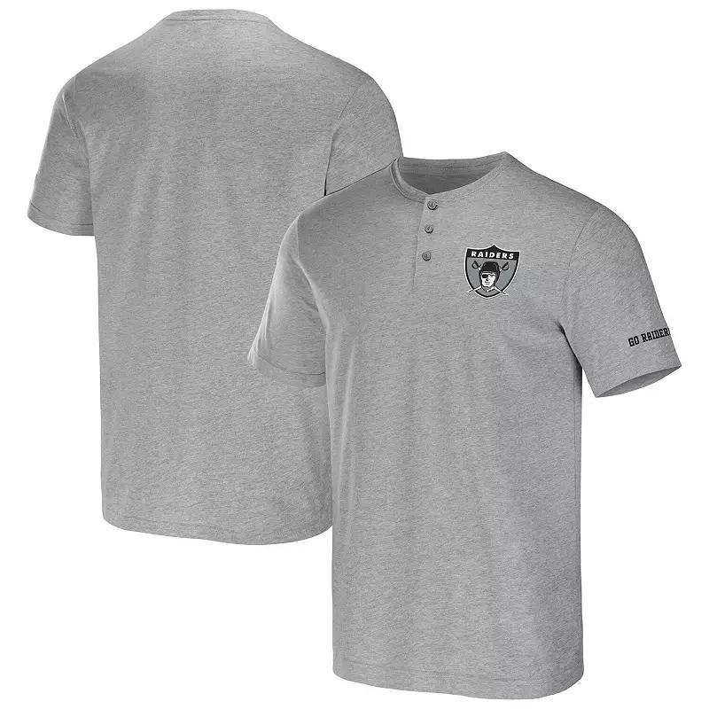 Give any Las Vegas Raiders look a striking finish with this T-shirt from the NFL x Darius Rucker Collection by Fanatics. This classic henley features a three-button placket and extra-soft heathered fabric. With team graphics on the chest and sleeve, this tee is an essential piece for any Las Vegas Raiders fan.Give any Las Vegas Raiders look a striking finish with this T-shirt from the NFL x Darius Rucker Collection by Fanatics. This classic henley features a three-button placket and extra-soft heathered fabric. With team graphics on the chest and sleeve, this tee is an essential piece for any Las Vegas Raiders fan.Officially licensedImportedBrand: NFL x Darius Rucker Collection by FanaticsTagless CollarMaterial: 90% Cotton/10% ViscoseMachine wash, tumble dry lowShort sleeveEmbroidered graphicsHenleyThree-button packet Color: Grey. Gender: male. Age Group: adult.