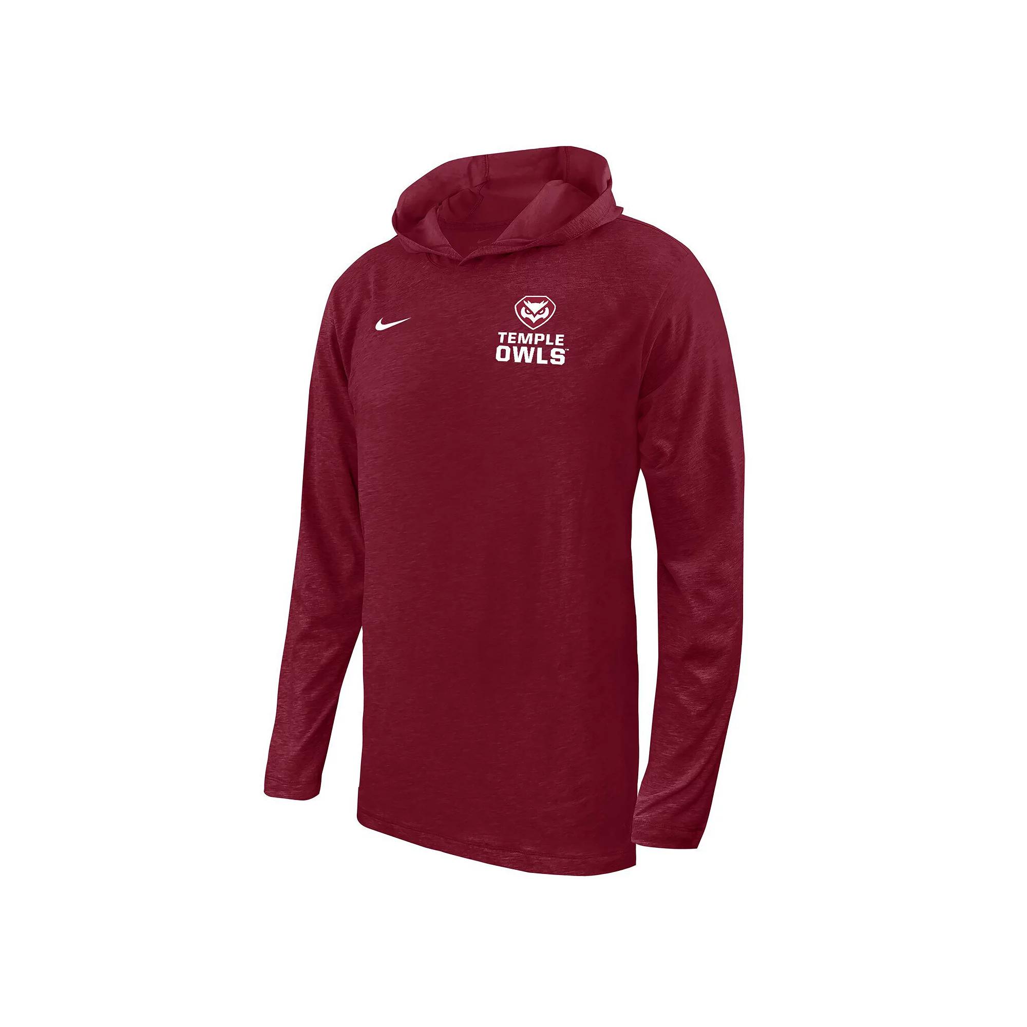 Get Temple Tuff by grabbing this Performance Long Sleeve Hoodie T-Shirt from Nike. The bold Temple Owls logo is printed across the front to help you gear up with your fellow owls. When youre cheering for your team at Lincoln Financial Field, you can stay comfortable with the shirts soft fabric and Dri-Fit technology.