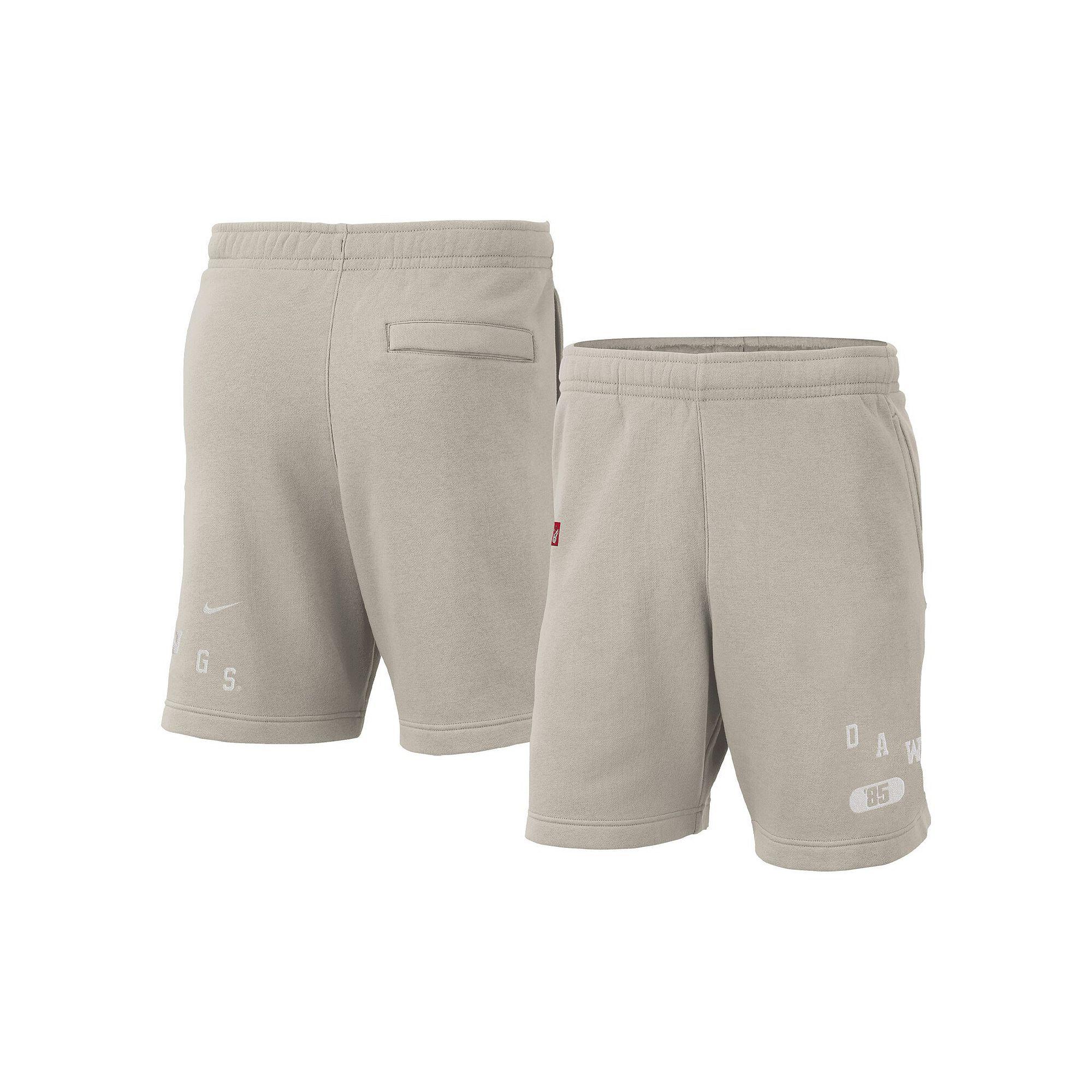 Soft, cozy and perfect for any casual occasion, our classic-fit Georgia shorts just might become one of your everyday favorites. Made with midweight brushed fleece, they feel extra soft on the inside and smooth on the outside. Subtle team details let you show out for the Bulldogs in comfort. Product Details: Elastic waistband with drawcord. Clamp label at right pocket. Side and back pockets. Body: 80% cotton/20%polyester. Side pocket knuckle side/back pocket: 100% cotton. Machine wash. Imported. Style: DR4340; Color: Cream II/University Red; Size: L; Gender: Male; Age Group: Adult | Georgia Men's Nike College Fleece Shorts in Brown, Size: Large | DR4340-236