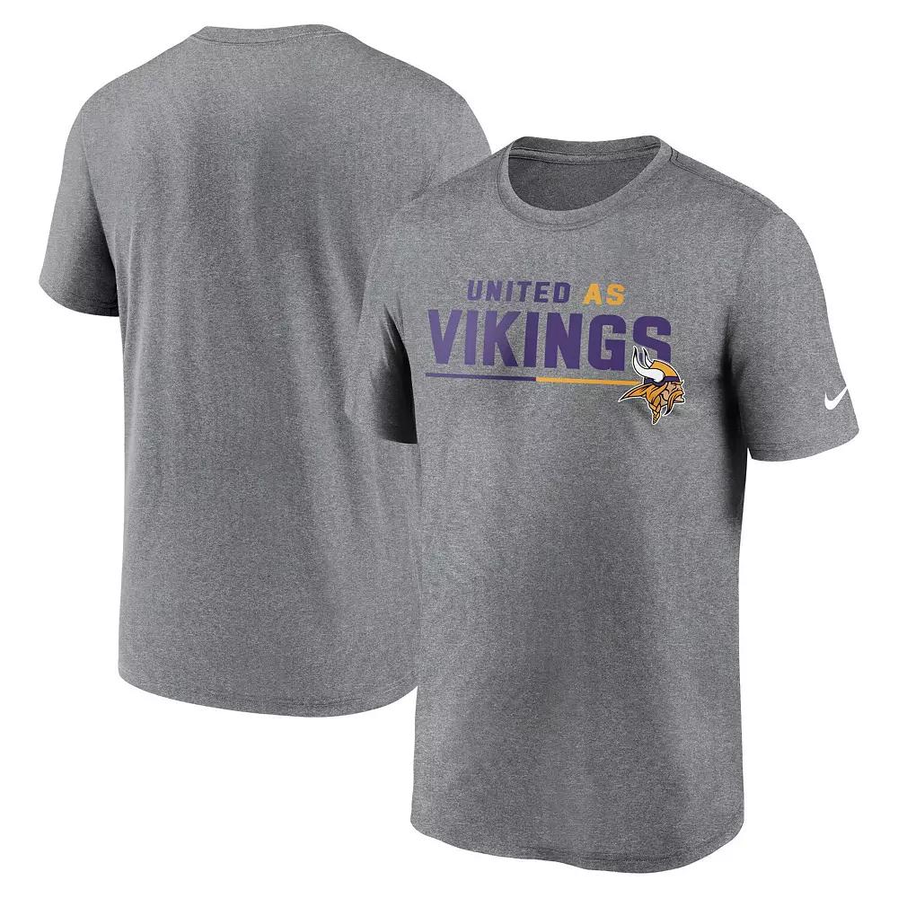 Let everyone know youre a dedicated supporter of the Minnesota Vikings by wearing this Legend Team Shoutout T-shirt from Nike. It features a fan-inspired phrase printed in team colors across the front and the Minnesota Vikings logo. Additionally, moisture-wicking Dri-FIT technology keeps the fabric feeling dry and comfortable to wear.Let everyone know youre a dedicated supporter of the Minnesota Vikings by wearing this Legend Team Shoutout T-shirt from Nike. It features a fan-inspired phrase printed in team colors across the front and the Minnesota Vikings logo. Additionally, moisture-wicking Dri-FIT technology keeps the fabric feeling dry and comfortable to wear.PRODUCT FEATURESDri-FIT technology wicks away moistureMaterial: 100% PolyesterMachine wash, tumble dry lowOfficially licensedImportedShort sleeveScreen print graphicsBrand: NikeNike Dry fabrics move sweat from your skin for quicker evaporationhelping you stay dry, comfortable and focused on the task at handCrew neck Color: Grey. Gender: male. Age Group: adult.