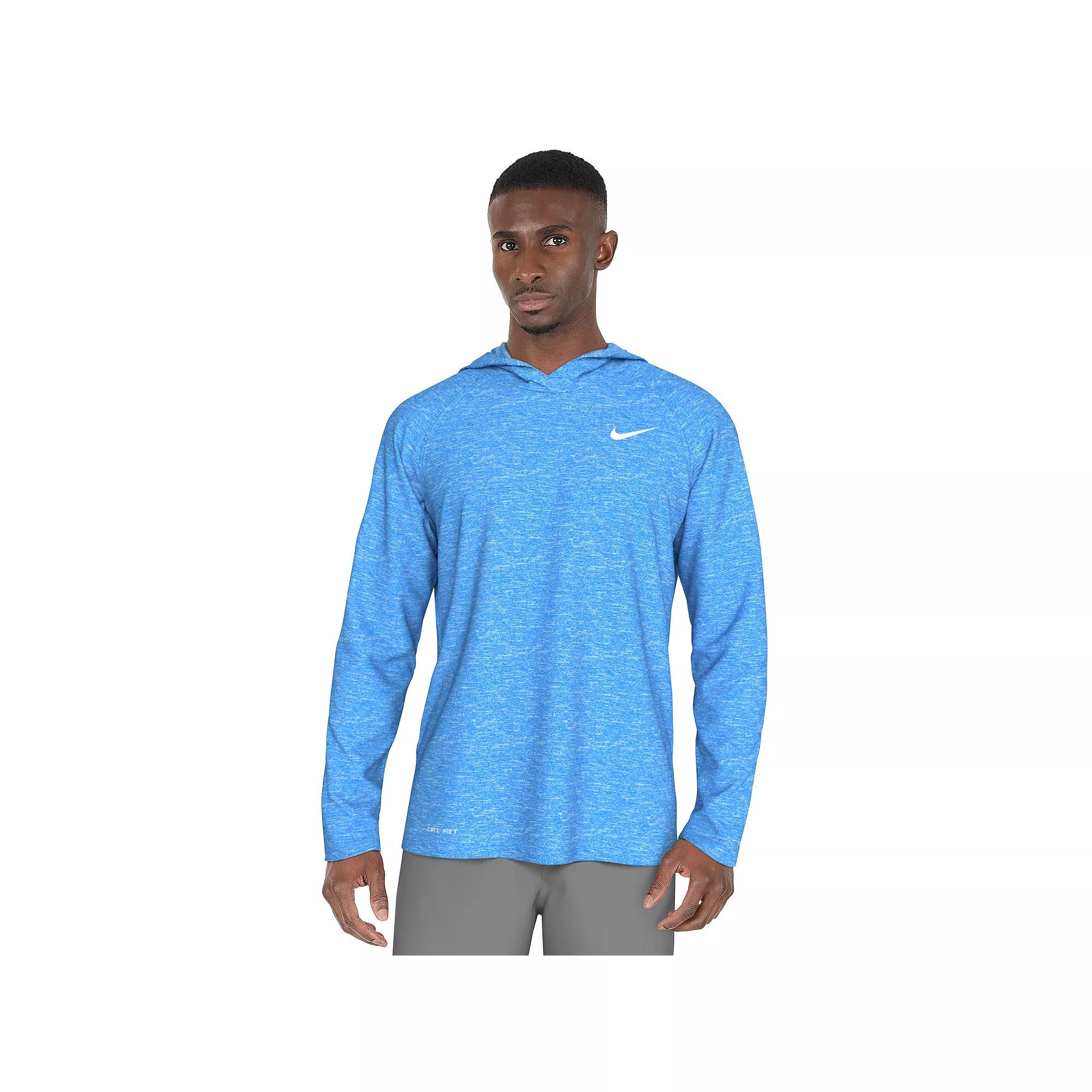 Catch eyes, not rays. This men's Nike hooded tee will keep you dry, comfortable and protected so you can unwind all day. Click on this MEN'S GUIDE to find the perfect fit and more!Catch eyes, not rays. This men's Nike hooded tee will keep you dry, comfortable and protected so you can unwind all day. Click on this MEN'S GUIDE to find the perfect fit and more!FEATURES Nike Dri-FIT technology moves sweat away from your skin for quicker evaporation, helping you stay dry and comfortable Integrated hood gives you coverage options when you need a little extra Internal neck tape is soft against the skin while you conquer the sand, salt and sun UPF 40 V-neck Long sleeveFIT & SIZING Loose fitFABRIC & CARE Polyester Machine wash Imported Size: XL. Color: University Blue. Gender: male. Age Group: adult.