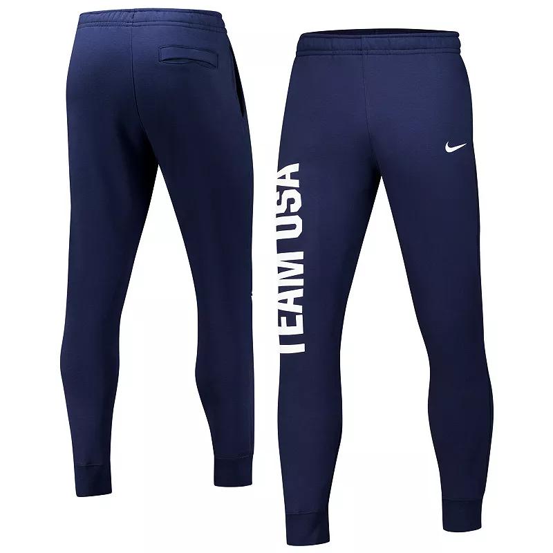 Show off your Team USA pride in comfort and style with these Nike Club Fleece Pants. The soft cotton-blend fleece lining provides exceptional comfort and warmth, making these pants perfect for relaxing on the weekends or cheering on Team USA. Two side pockets and a back pocket offer convenient storage for your phone, keys, or other essentials.Show off your Team USA pride in comfort and style with these Nike Club Fleece Pants. The soft cotton-blend fleece lining provides exceptional comfort and warmth, making these pants perfect for relaxing on the weekends or cheering on Team USA. Two side pockets and a back pocket offer convenient storage for your phone, keys, or other essentials.PRODUCT FEATURESOfficially licensedTwo side pocketsElastic waistbandOne back pocketInseam measures approx. 29Material: 80% Cotton/20% Polyester - Body; 100% Cotton - Side and Back PocketsRibbed cuff at hemMachine wash, tumble dry lowTeam graphic screen printed on right legImportedFleece lining for added comfortBrand: Nike Size: 2XL. Color: Usa Navy. Gender: male. Age Group: adult.
