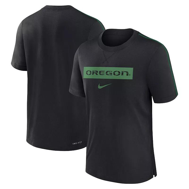 Gear up for the upcoming season with this Oregon Ducks 2024/25 Sideline Player Performance Tri-Blend T-Shirt from Nike. Replicating the gear worn by the players, coaches, and team staff, this tee features a diagonal stripe pattern that highlights the team name printed across the chest. The tri-blend material provides an extra-soft feel, while Dri-FIT technology wicks away moisture to keep you cool and dry. This tee is a must-have for any Ducks fan looking to show their team pride and elevate their game day style.Gear up for the upcoming season with this Oregon Ducks 2024/25 Sideline Player Performance Tri-Blend T-Shirt from Nike. Replicating the gear worn by the players, coaches, and team staff, this tee features a diagonal stripe pattern that highlights the team name printed across the chest. The tri-blend material provides an extra-soft feel, while Dri-FIT technology wicks away moisture to keep you cool and dry. This tee is a must-have for any Ducks fan looking to show their team pride and elevate their game day style.PRODUCT FEATURESTri-blend material provides an extra-soft feelMaterial: 75% Polyester/13% Cotton/12% RayonCrew neckContrast-color flatlock stitching down the sleevesDri-FIT technology wicks away moistureImportedShort sleeveMove To Zero apparel labeled sustainable materials is made with at least 50% recycled content as part of Nikes journey toward a zero carbon and zero waste futureBottom hem with side splits for better movementDiagonal stripe pattern highlights team name printed across the chestMachine wash, tumble dry lowBrand: NikeReplicates gear worn by the players, coaches and team staffOfficially licensed Color: Black. Gender: male. Age Group: adult.
