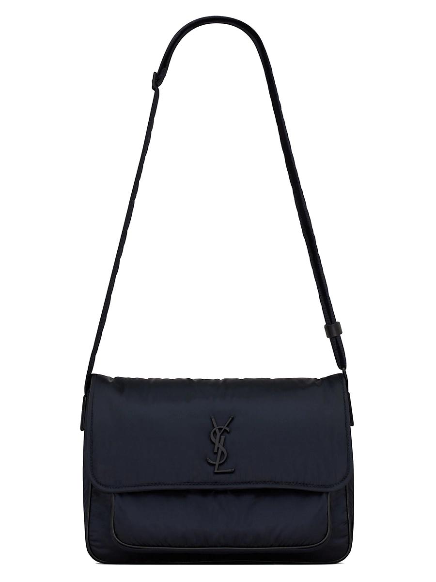 The iconic niki in recycled nylon, featuring a metal cassandre and an adjustable shoulder strap. practical and lightweight, it features two compartments and a patch back pocket. Dimensions: 32.5 x 23 x 10 cms / 12.8 x 9.1 x 3.9 inches Made in Italy. Lsd Handbags - Saint Laurent > Saint Laurent > Saks Fifth Avenue > Barneys. Saint Laurent. Color: Blue.