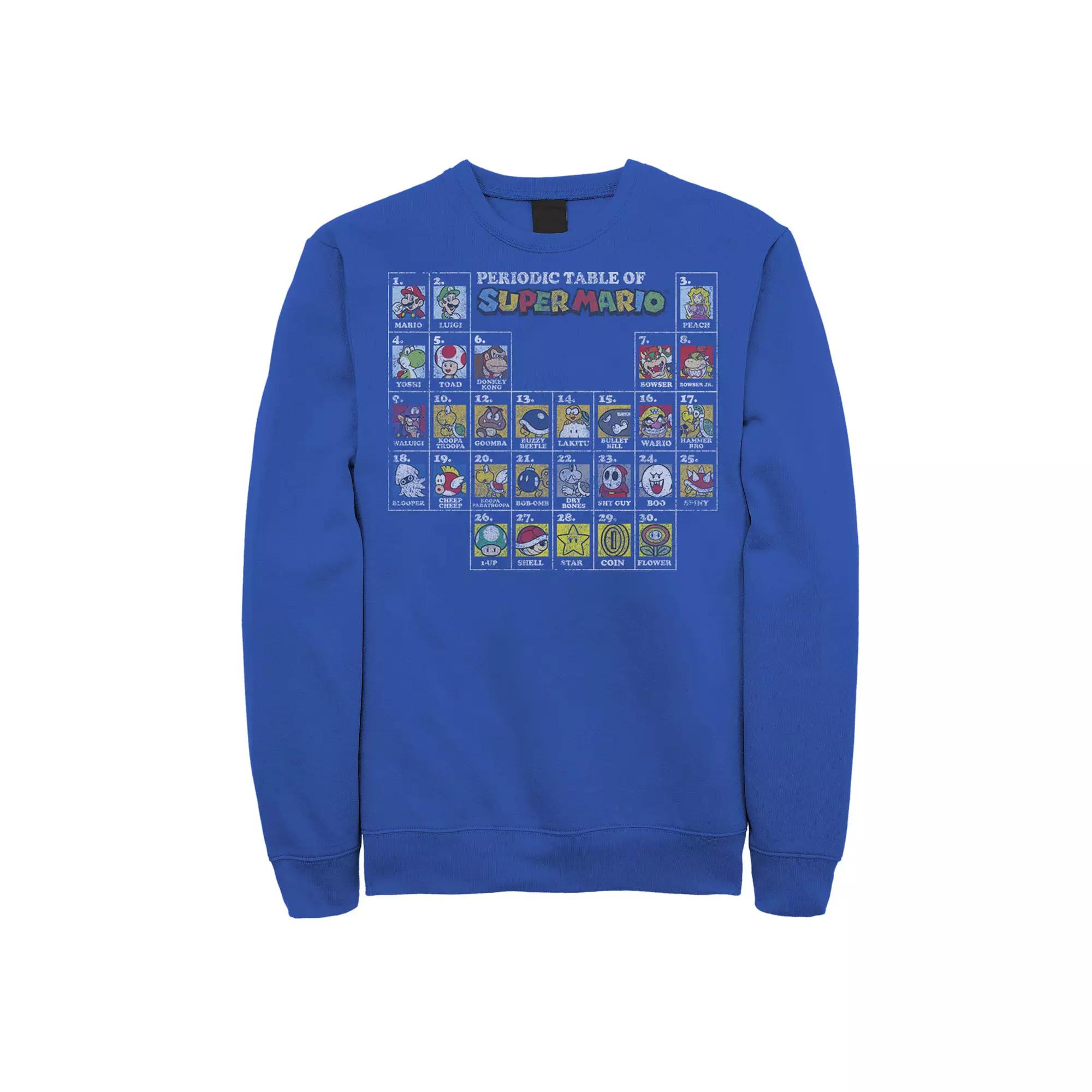 Hell love the look of this Mens Nintendo Nintendo Super Mario Periodic Table Of Character Panel Grid Graphic Fleece Pullover. Hell love the look of this Mens Nintendo Nintendo Super Mario Periodic Table Of Character Panel Grid Graphic Fleece Pullover. Crewneck Long sleevesFABRIC & CARE Cotton, polyester Machine wash Imported Color: Med Blue. Gender: male. Age Group: adult.