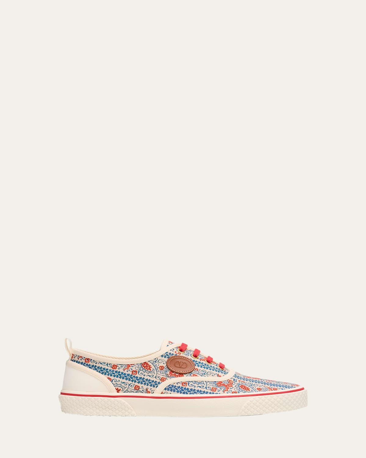 Valentino Garavani lowtop sneakers in printed canvas Leather patch with embossed VLogo Signature Flat heel Round toe Laceup vamp Leather lining Backstay pull tab Rubber outsole Made in Italy