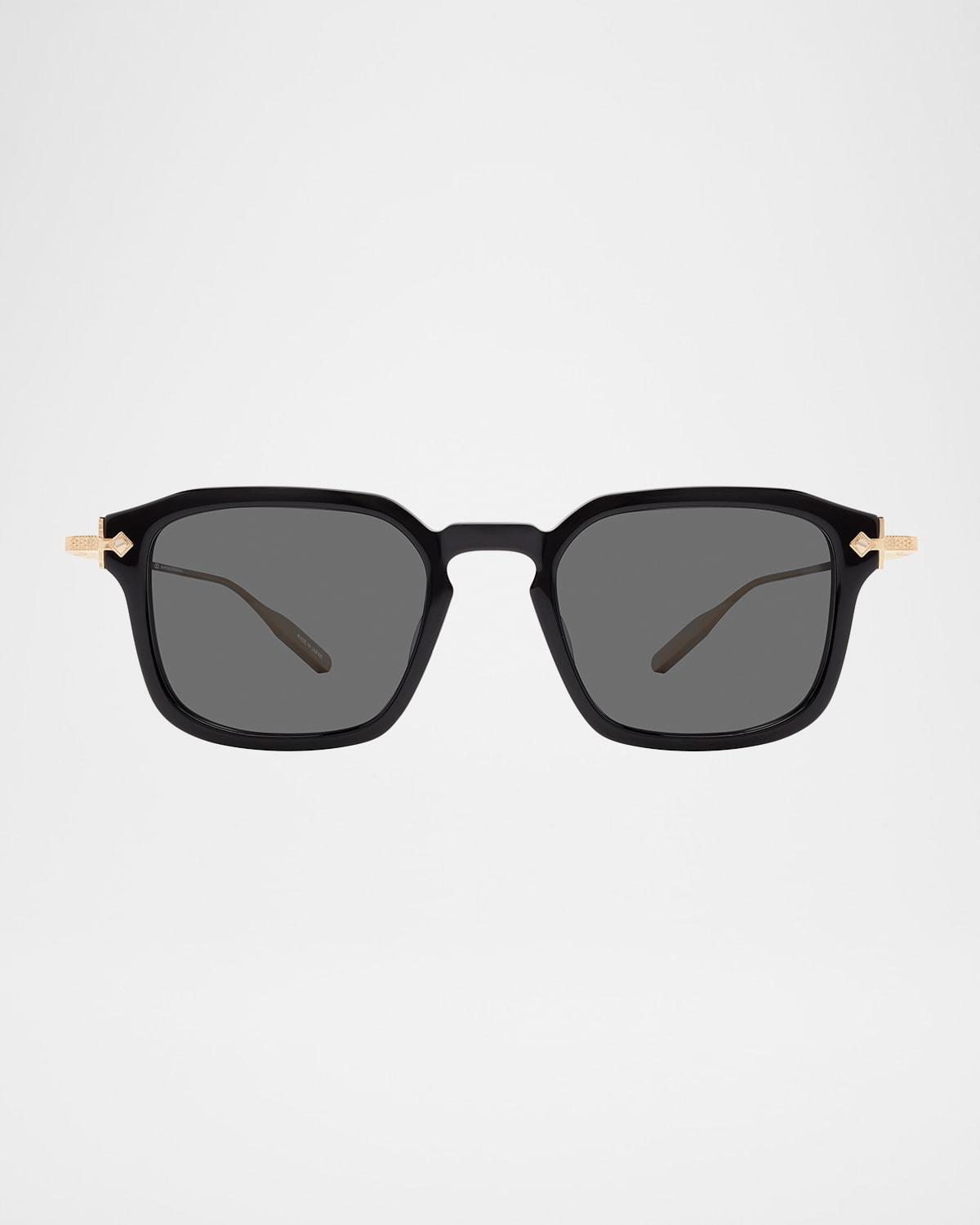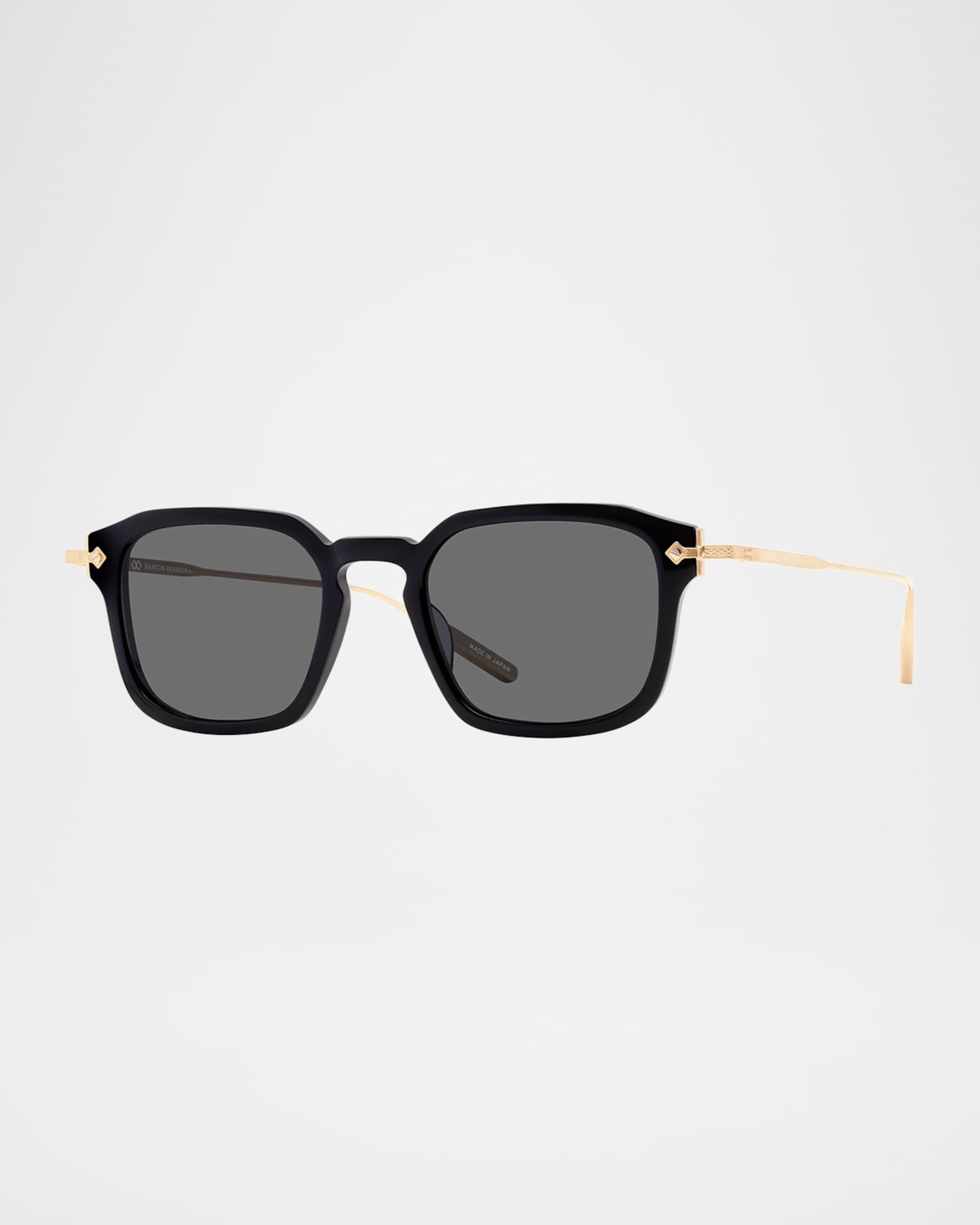 Crafted of Japanese acetate, the Barton Perreira "Nolan" rectangular sunglasses feature detailed titanium hardware Eye/bridge/temple (in mm): 49-21-147 Solid lenses Keyhole nose bridge Signature logo engraving on temples Thin, tapered arms 100% UVA/UVB protection Made in Japan Proposition 65 warning for California residents