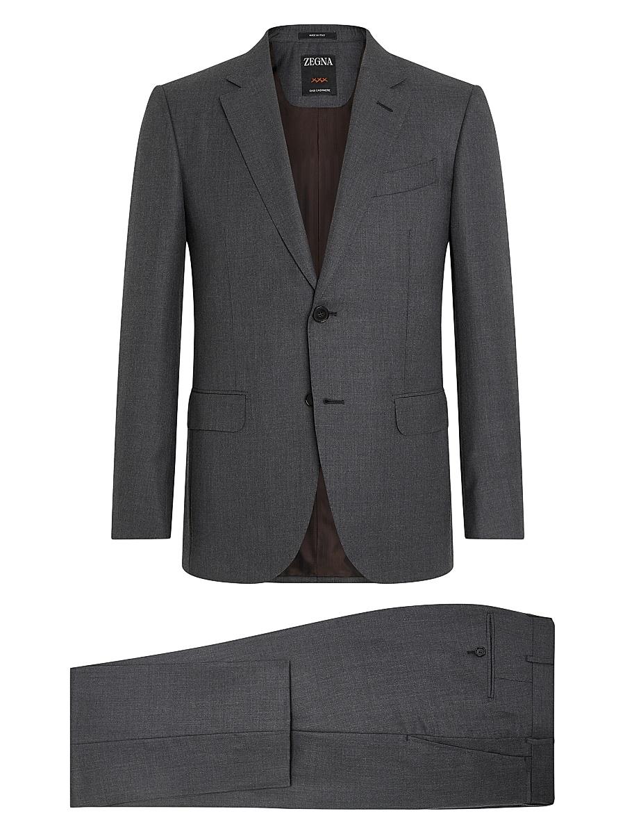 Crafted from specially selected cashmere fibers, the Oasi Cashmere suit is exquisitely soft and smooth to the touch. This special fabric is paired with a classic colorway to create a staple of elegant wardrobes. The tailoring suit is fully lined, pairing a jacket with notch lapels and flap pockets with flat front pants. Regular fit Drop 7 Tailoring suit Double vents Notch lapels Button closure Flap pockets Canvas construction Fully lined 74.5 cm length on size 48 Flat front pants, 20 cm hem Sleeves and pants are unfinished. You can bring your jacket and pants to our boutiques for alterations Made in Italy FABRIC DETAILS 100% Cashmere Do not wash. Do not bleach. Do not tumble dry. Iron at max 110C. Professional dry cleaning in tetrachloroethene and hydrocarbons, mild process. Lsd Mens - Zegna Rtw > Zegna > Saks Fifth Avenue > Barneys. ZEGNA. Color: Grey. Size: 46.