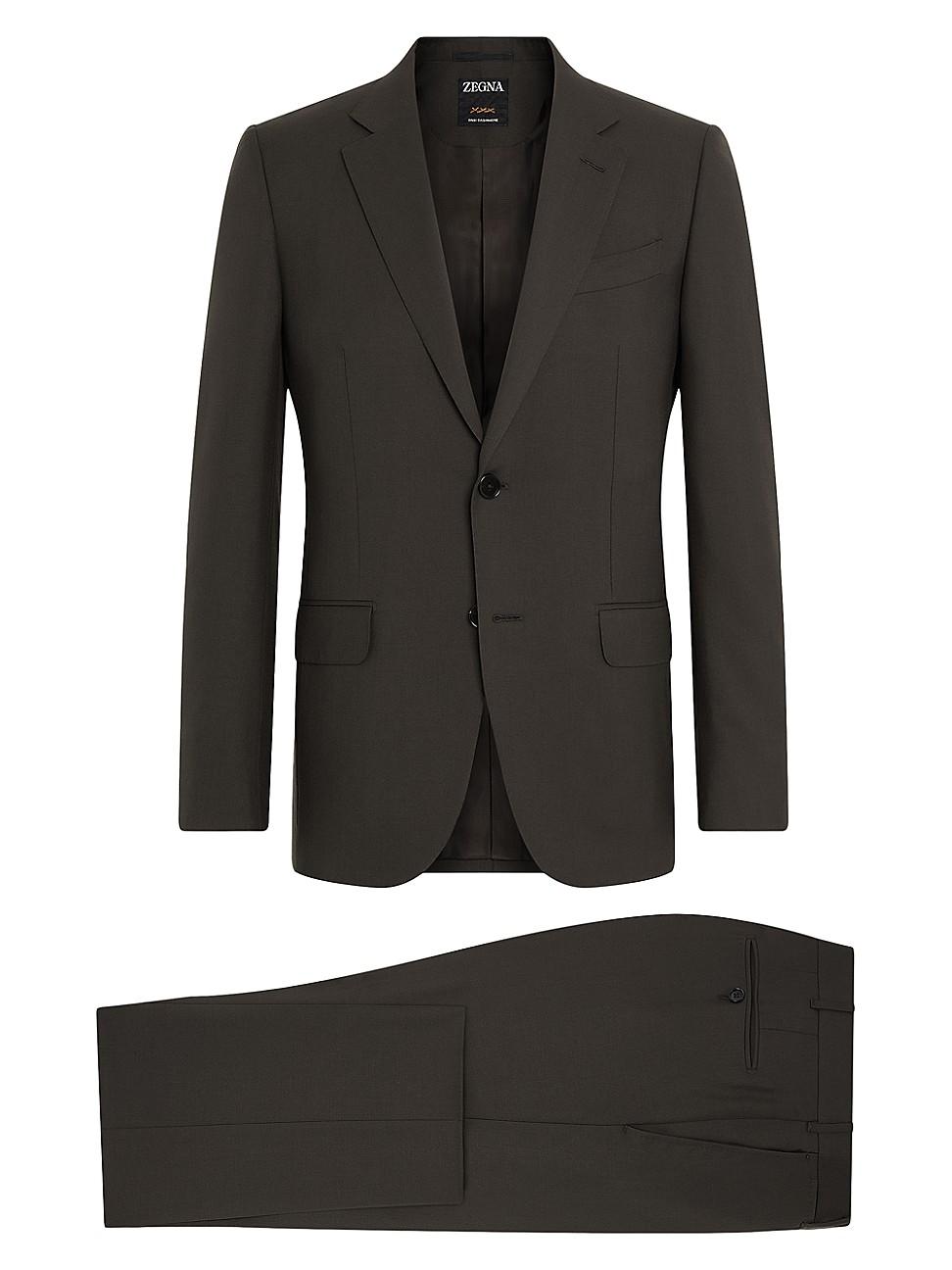 Crafted from specially selected cashmere fibers, the Oasi Cashmere suit is exquisitely soft and smooth to the touch. This special fabric is paired with a rich colorway to create a staple of elegant wardrobes. The dark brown suit is styled with flat-front pants for a streamlined look. Regular fit Drop 7 Tailoring suit Double vents Notch lapels Flap pockets Canvas construction Fully lined 74.5 cm length on size 48 Flat front pants, 20 cm hem Sleeves and pants are unfinished. You can bring your jacket and pants to our boutiques for alterations Made in Italy FABRIC DETAILS 100% Cashmere Do not wash. Do not bleach. Do not tumble dry. Iron at max 110C. Professional dry cleaning in hydrocarbons, mild process. Lsd Mens - Zegna Rtw > Zegna > Saks Fifth Avenue > Barneys. ZEGNA. Color: Dark Brown. Size: 44.