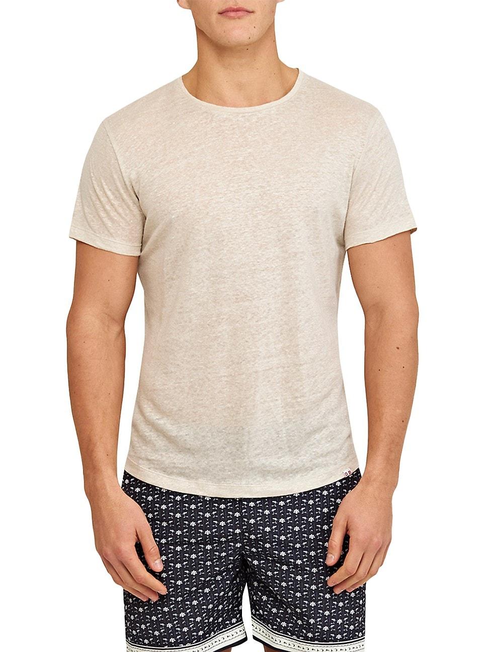 Crafted of linen, this Orlebar Brown T-shirt is styled with a crewneck and short sleeves. Crewneck Short sleeves Pulls over 100% linen Machine wash Made in Portugal SIZE & FIT Tailored fit About 28 from shoulder to hem Model measurements: 62 tall Model is wearing a US size Medium >. Mens Modern Coll & Outer - Swim Lifestyle > Orlebar Brown > Saks Fifth Avenue > Barneys. Orlebar Brown. Color: Pebble. Size: Large.