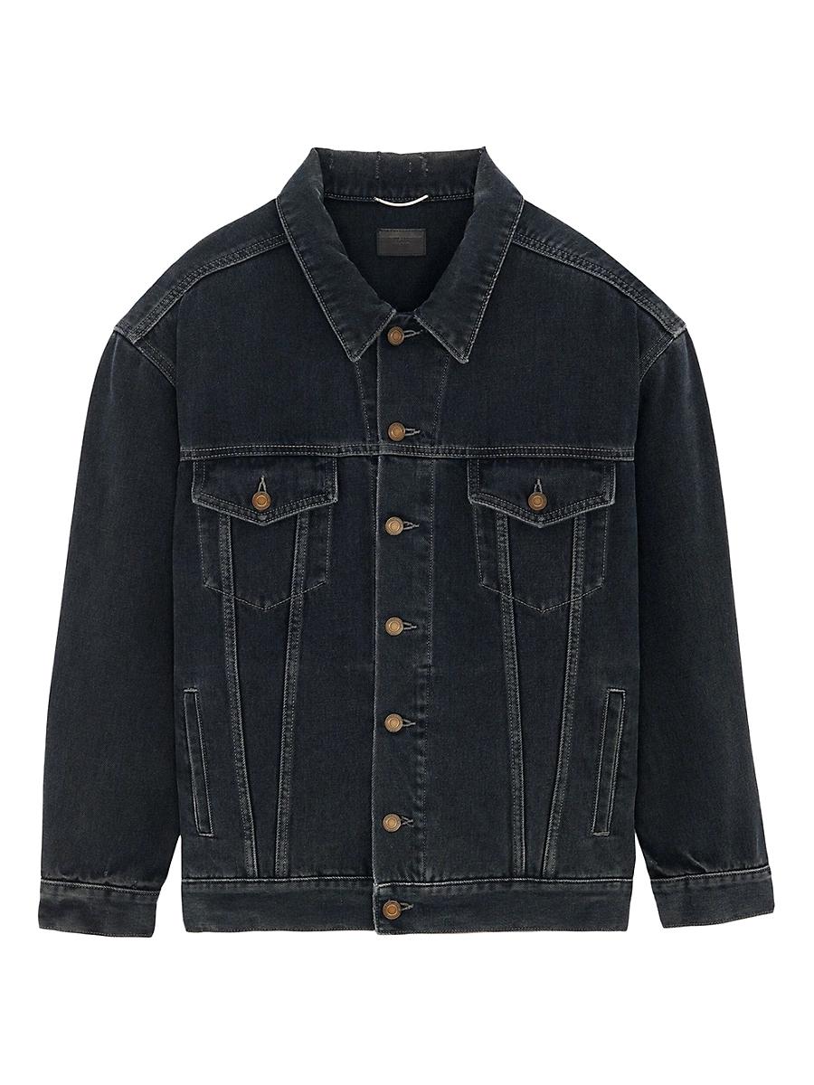 Egg-shaped denim jacket made with organic cotton, featuring a button closure and adjustable button tabs at the back waist. Front button closure Two welt pockets at the front, two patch pockets with buttoned flap at the chest Pointed collar One-button cuffs Made in Italy. Lsd Rtw - Saint Laurent Rtw > Saint Laurent > Saks Fifth Avenue > Barneys. Saint Laurent. Color: Dark Blue. Size: 36.