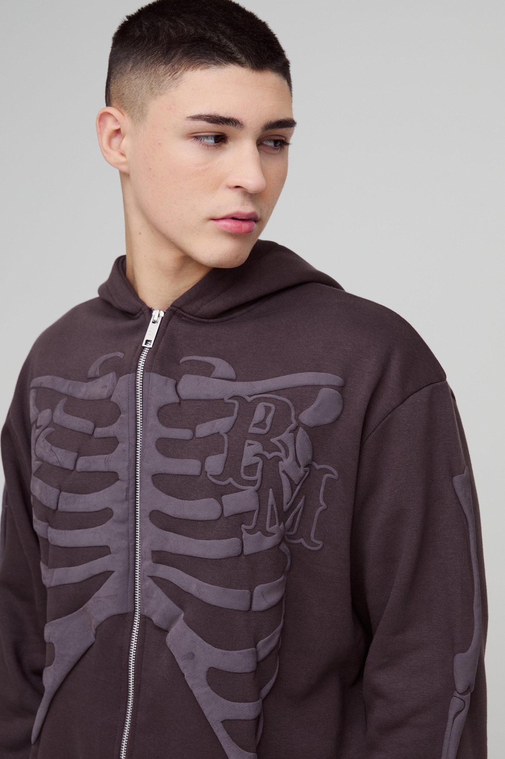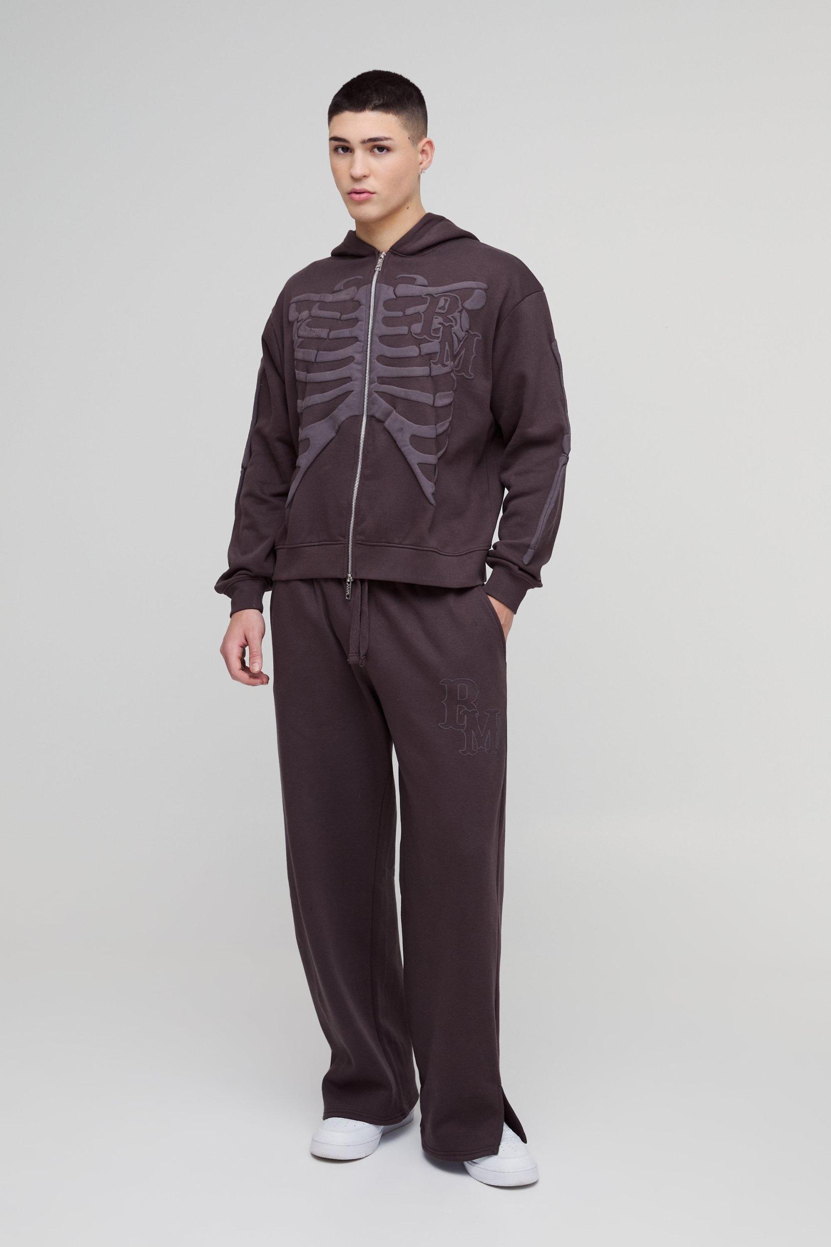 Oversized Skeleton Print Zip Through Hooded Tracksuit | boohooMAN USA