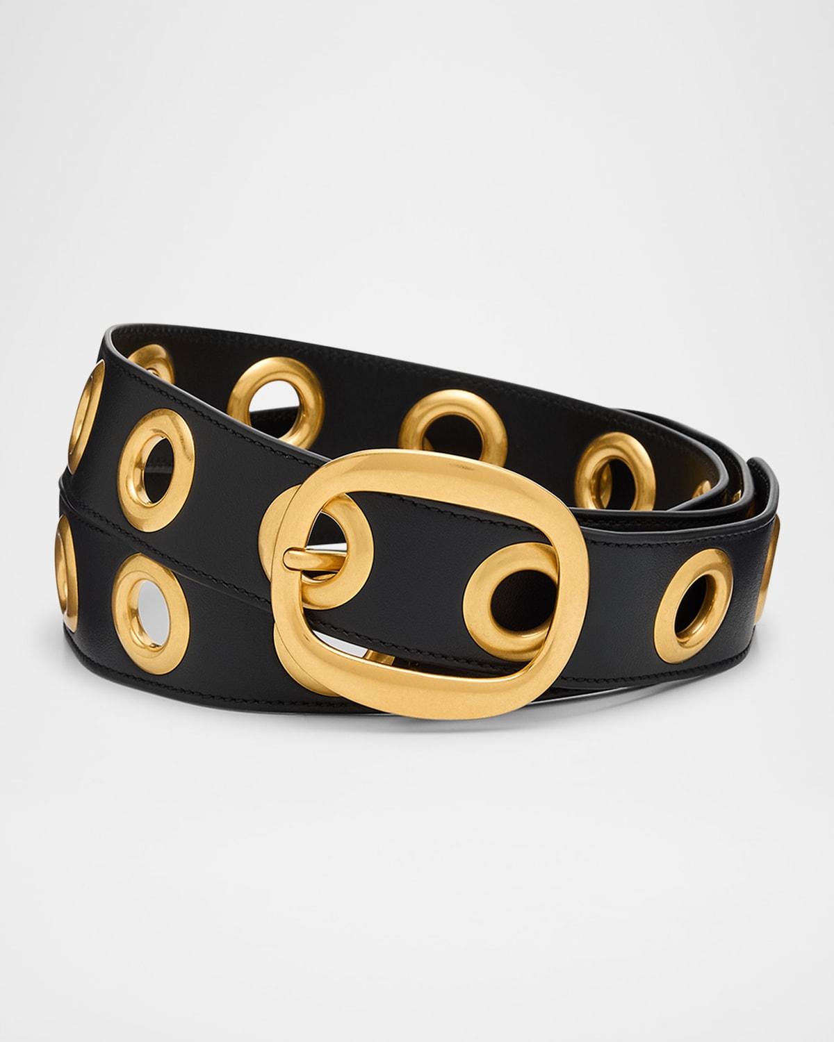 Shop Tom Ford Men's Ovoid Leather Belt With Eyelets In Black from 800+ stores, starting at $1990. TOM FORD "Ovoid" belt in soft, smooth leather featuring goldtone eyelets Approx. 1.57"W Oval pin buckle Adjustable fit Item Weight (Lbs.): 0.7 Leather Made in Italy