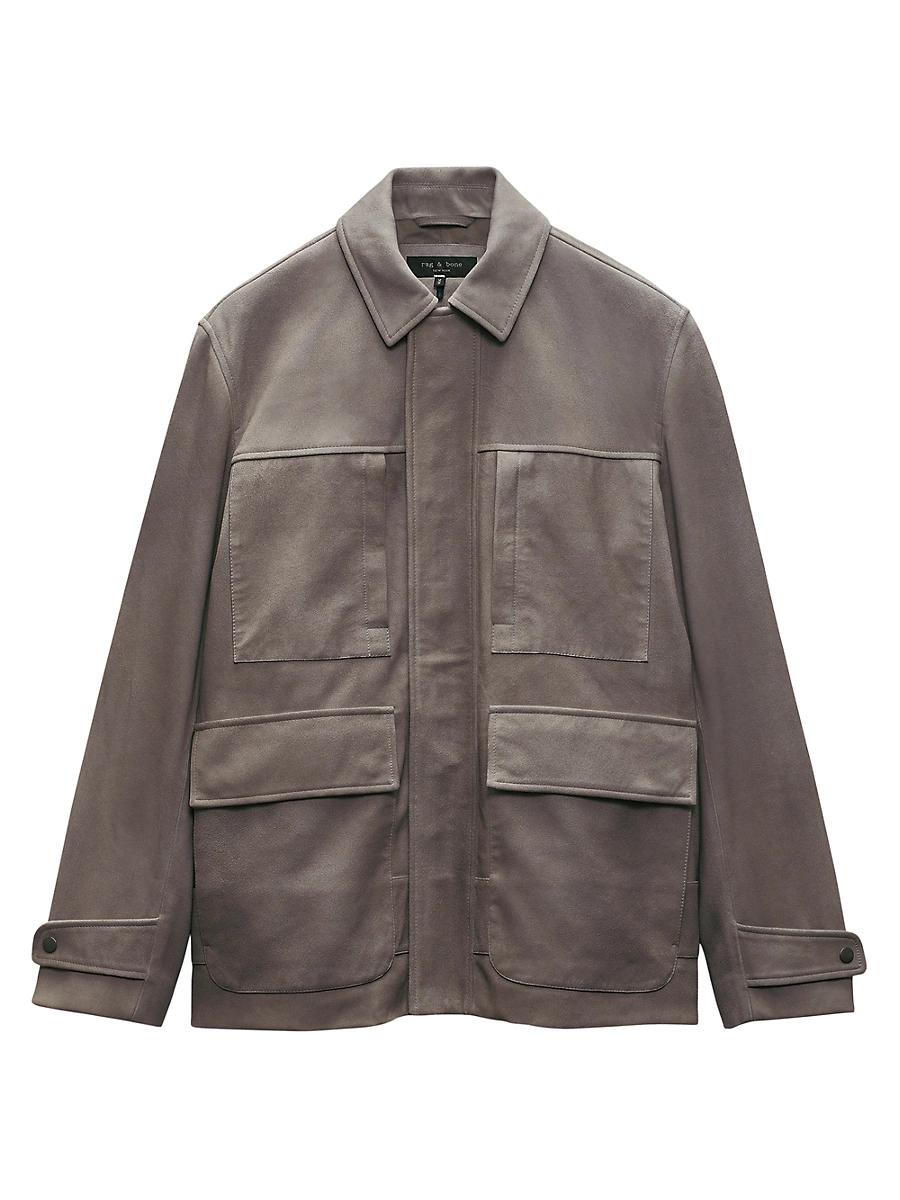 The Pace Chore jacket from rag & bone is crafted of luxurious suede. Various patch pockets and a zip closure with a snap storm placket lend dynamic function to this style. Spread collar Long sleeves, snap strap cuffs Chest patch pockets Side flap-patch pockets Front zip closure, storm snap placket Leather Dry clean Imported SIZE & FIT Relaxed About 30 from center back to hem Chest: about 47.5 Sleeve length: about 35.5 Model measurements: 62 tall, 40 chest, 31 waist Model is wearing a US size Medium ABOUT THE BRAND In 2002, rag & bone founder Marcus Wainwright combined his British heritage with a downtown-New York aesthetic to set the tone for the label. At the heart of the edgy-yet-laid-back brand is its focus on quality craftsmanship and attention to detail. The epitome of cool, off-duty style, its no wonder the signature denim and easy knits are favored by many. Mens Denim & Contemp - Contemp Denim And Bottom > Rag & Bone > Saks Fifth Avenue > Barneys. rag & bone. Color: Desert. Size: XL.