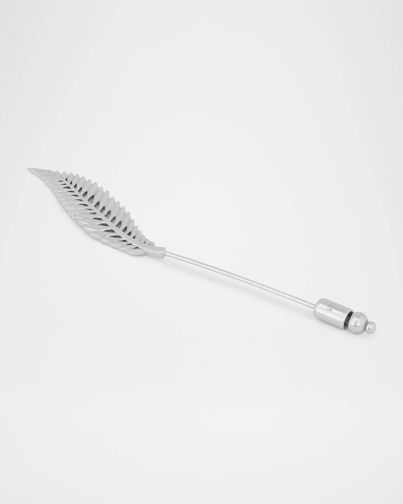 Mens Palladium-Plated Fern Leaf Lapel Pin