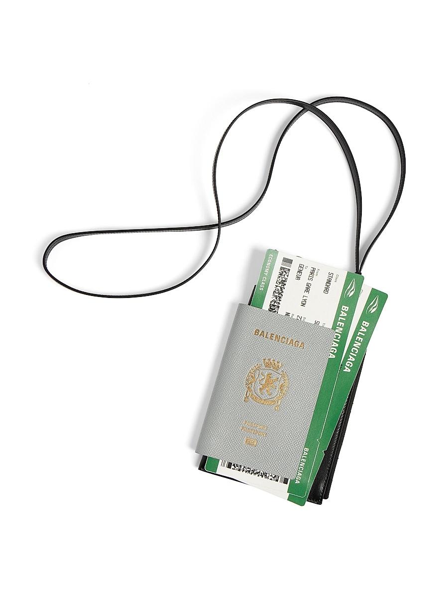 Dimensions: L 4.9 x H 7.9 x W 0.8 inch Semi matte soft textured calfskin Phone holder Removable crossbody strap (21.6 inch) Balenciaga logo and two trompe loeil tickets printed at front Can fit an iPhone 14 & 15 Pro Max with a cover on the back compartment Aged-silver hardware Zipped closure 1 main compartment 3 inner card slots 1 back pocket Wipe with a soft cloth Made in Italy. Lsd Handbags - Balenciaga > Balenciaga > Saks Fifth Avenue > Barneys. Balenciaga. Color: Black.