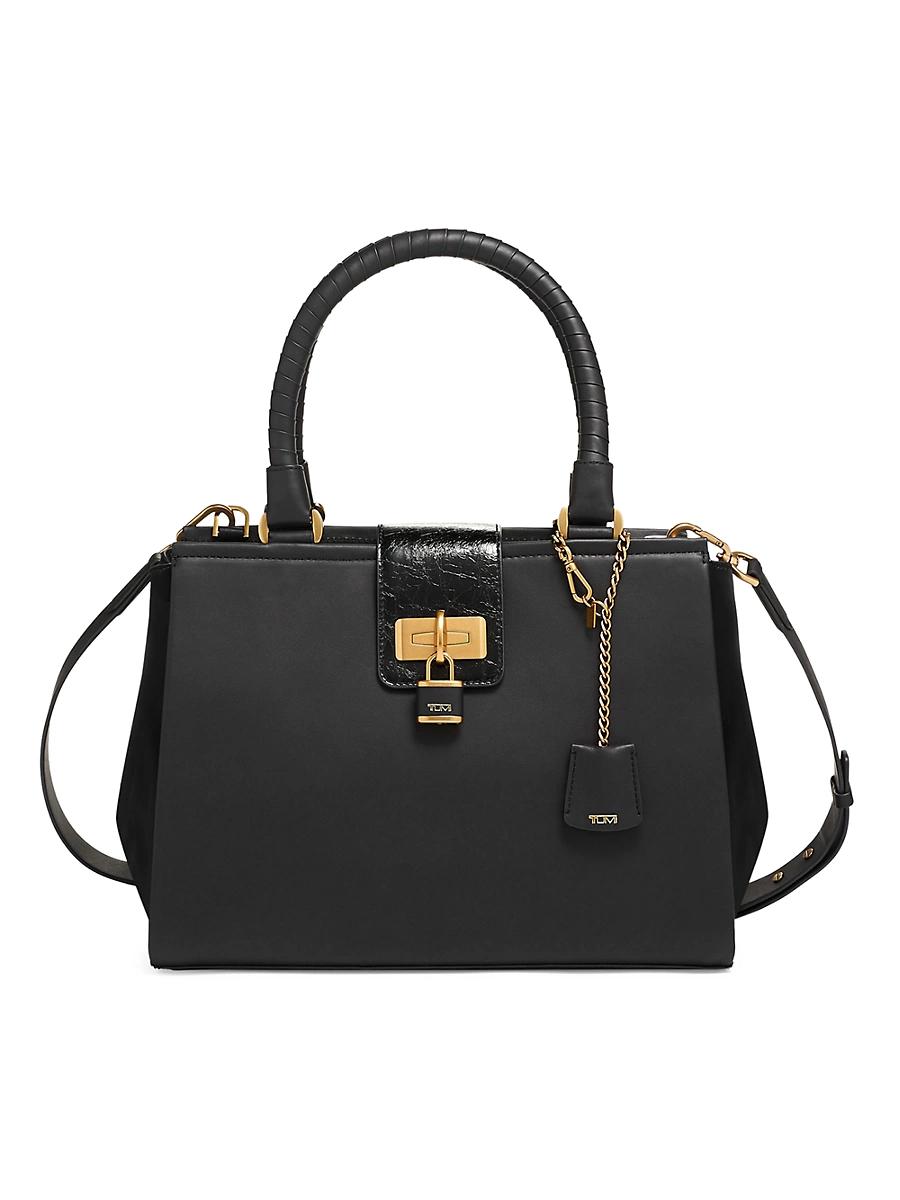 From the Pavia Collection. Structured croc-embossed leather tote with convertible carrying options and innovative construction. Removable shoulder strap Top handles Turnlock flap closure Protective metal feet Black hardware Leather back strap for attaching to a suitcase handle Inside zip pocket Inside slip pocket Two inside media pockets Lined Leather Imported SIZE 13.25W x 10H x 6D. Men Accessories - Tumi Imports > Tumi > Saks Fifth Avenue > Barneys. TUMI. Color: Black.