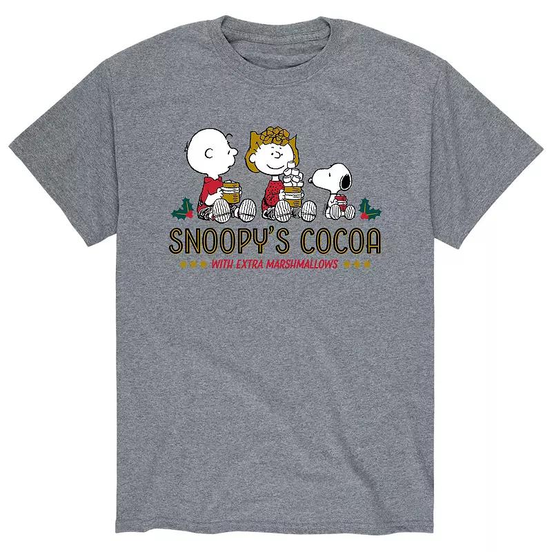 Get cozy this holiday season with this mens Peanuts Snoopy tee. Get cozy this holiday season with this mens Peanuts Snoopy tee. Crewneck Short sleevesFABRIC & CARE White, Navy, Yellow, Maroon, Charcoal: cotton Other: cotton/polyester Machine wash Imported Color: Med Grey. Gender: male. Age Group: adult. Pattern: Graphic. Material: Cotton Blend.