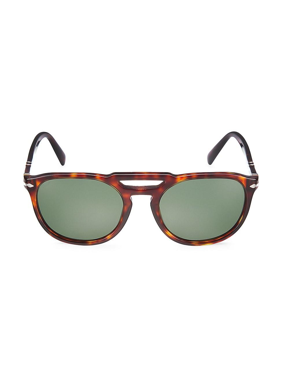 The double nose bridge adds a retro flair to these round sunglasses. 100% UV protection Gradient lenses Case and cleaning cloth included Glass/acetate Made in Italy SIZE 52mm lens width 19mm bridge width 145mm temple length. Soft Accessories - Men Sunglasses > Persol > Saks Fifth Avenue > Barneys. Persol. Color: Havana Green.